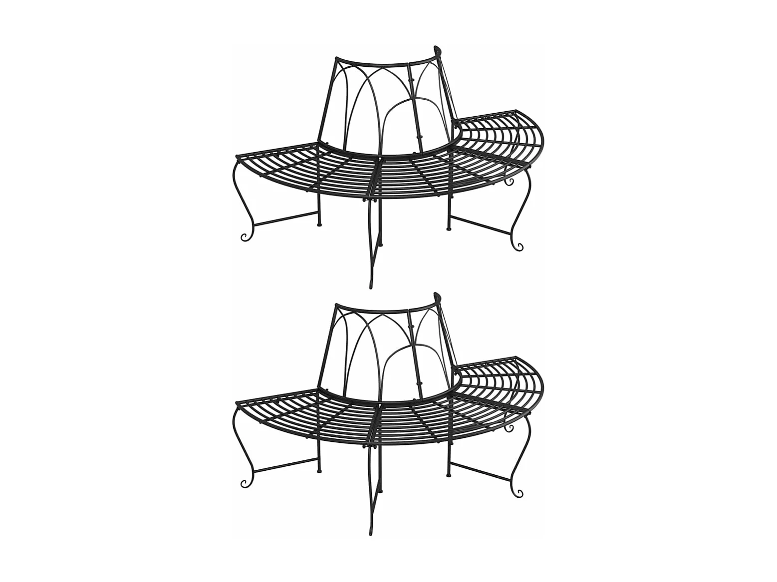 Banc demi-circulaire tour d'arbre 2 pièces Ø159 cm Noir Acier