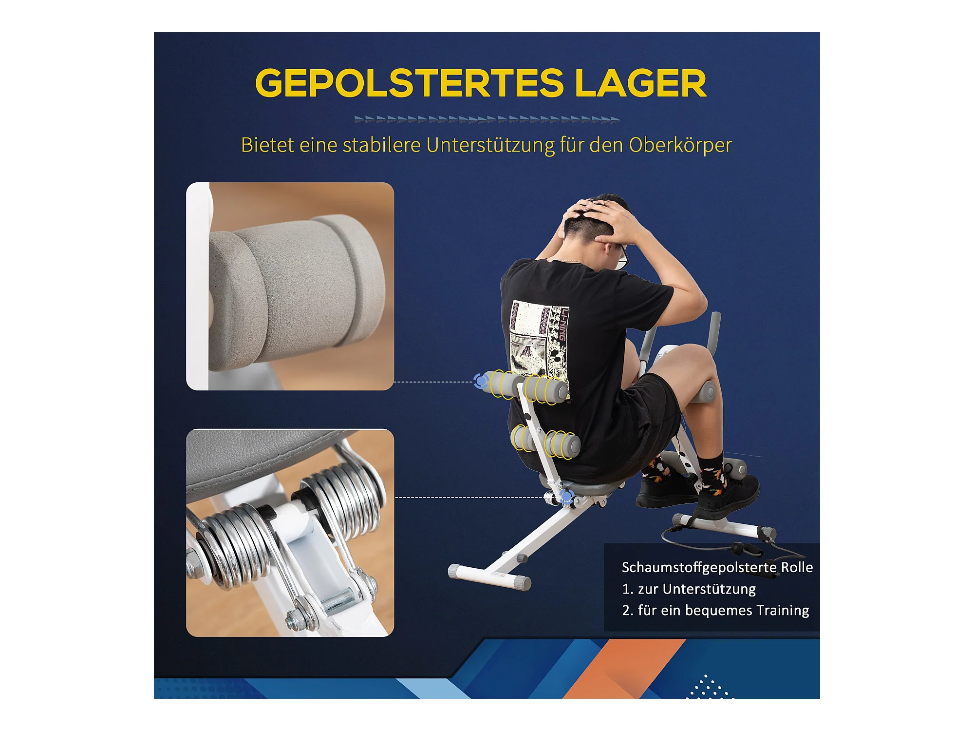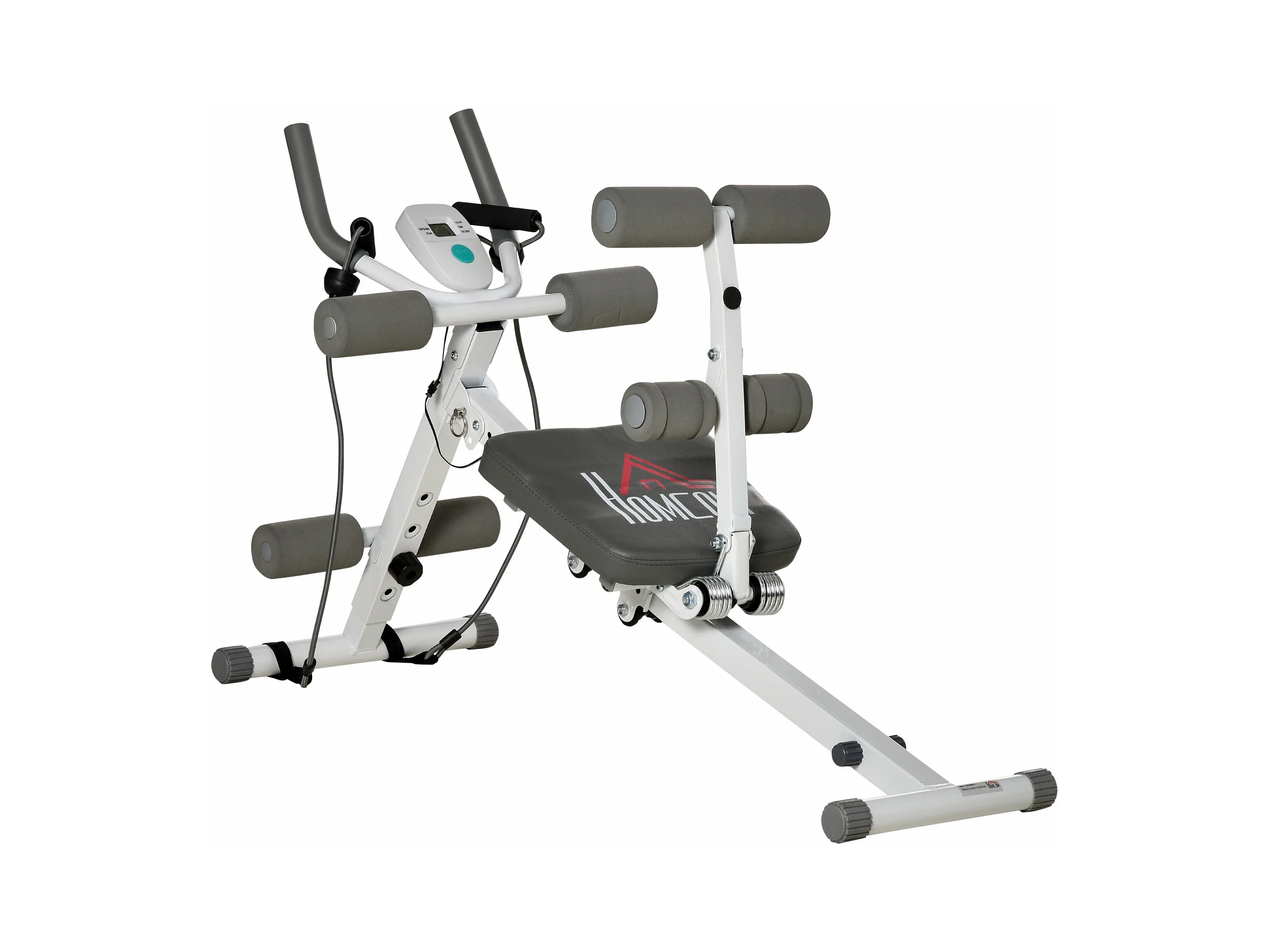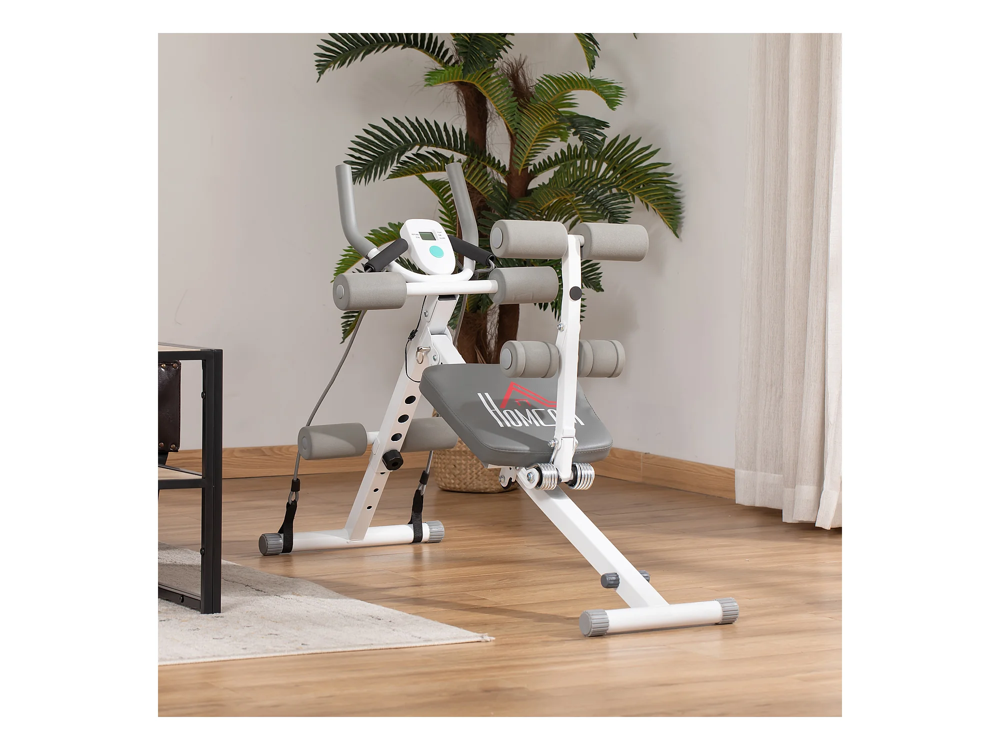 Banc d'entraînement abdominal 2-en-1 réglable avec écran LCD, acier, blanc et gris (117x46x70 cm)