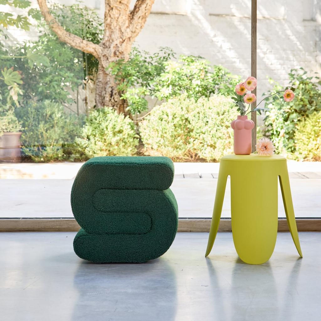 Tabouret / pouf design revêtement bouclette vert 1 place L 43 x P 47 x H 44cm - Sasha