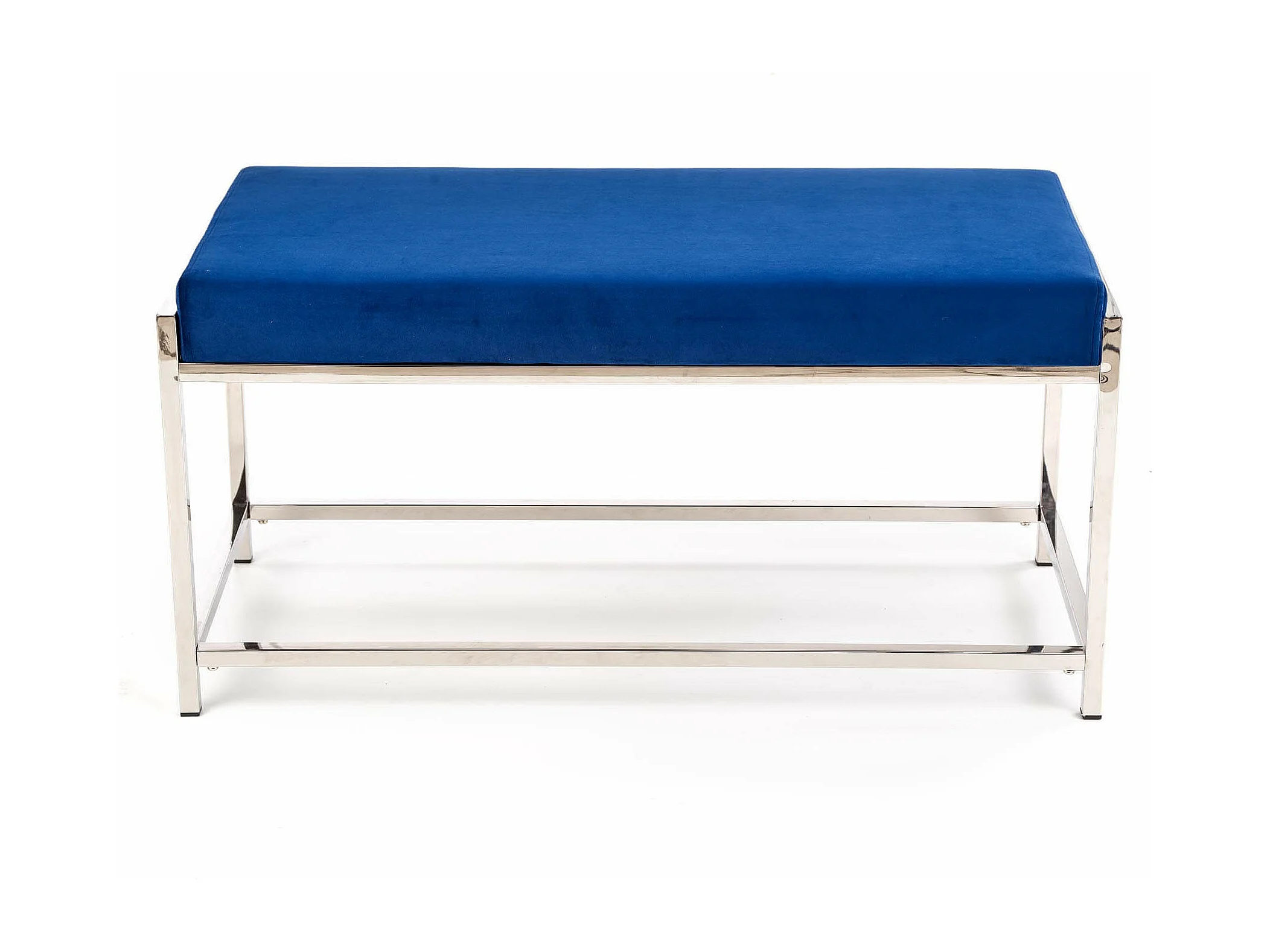 Banc d'intérieur en velours bleu avec structure en acier argenté NEMESIS