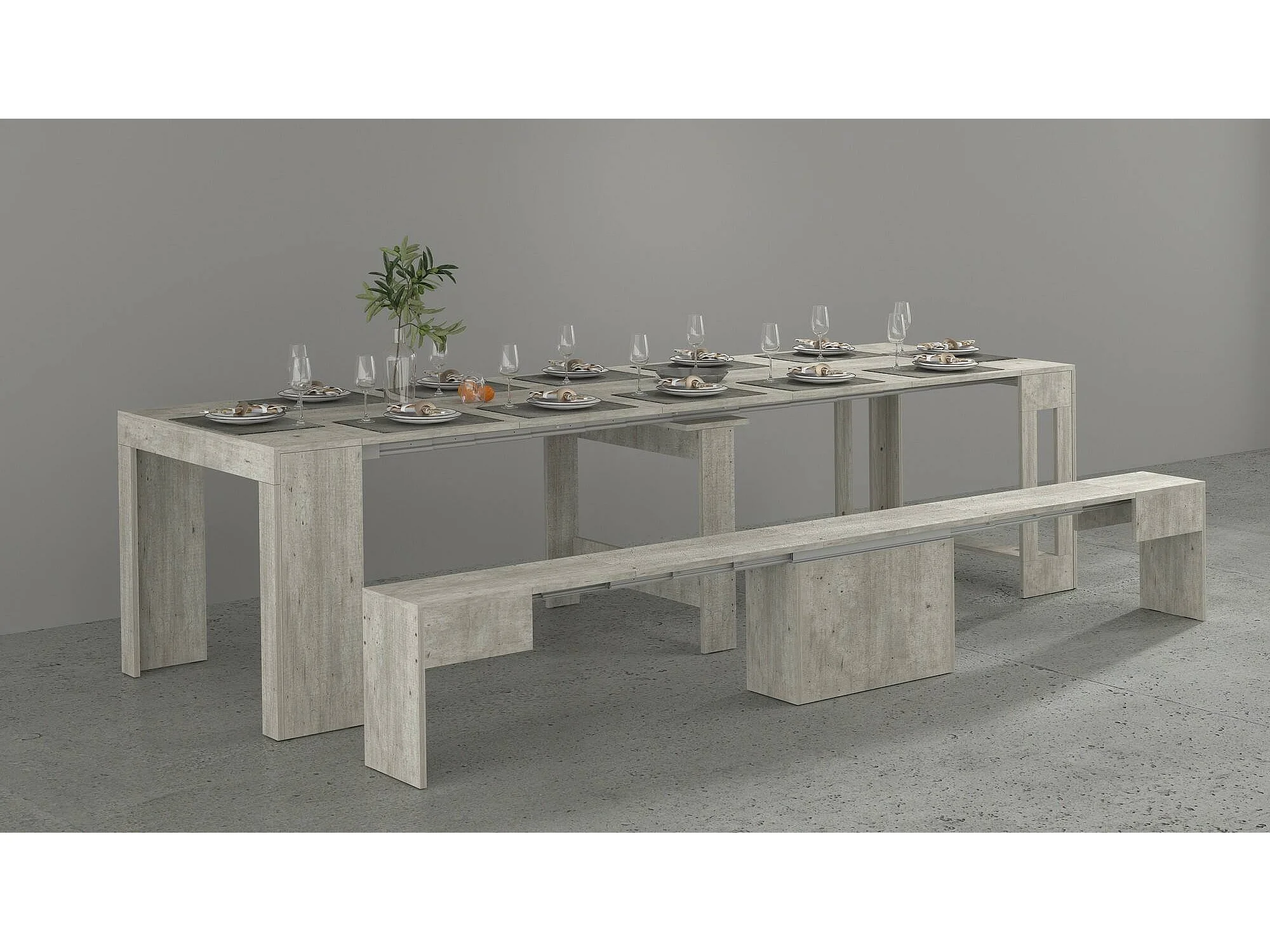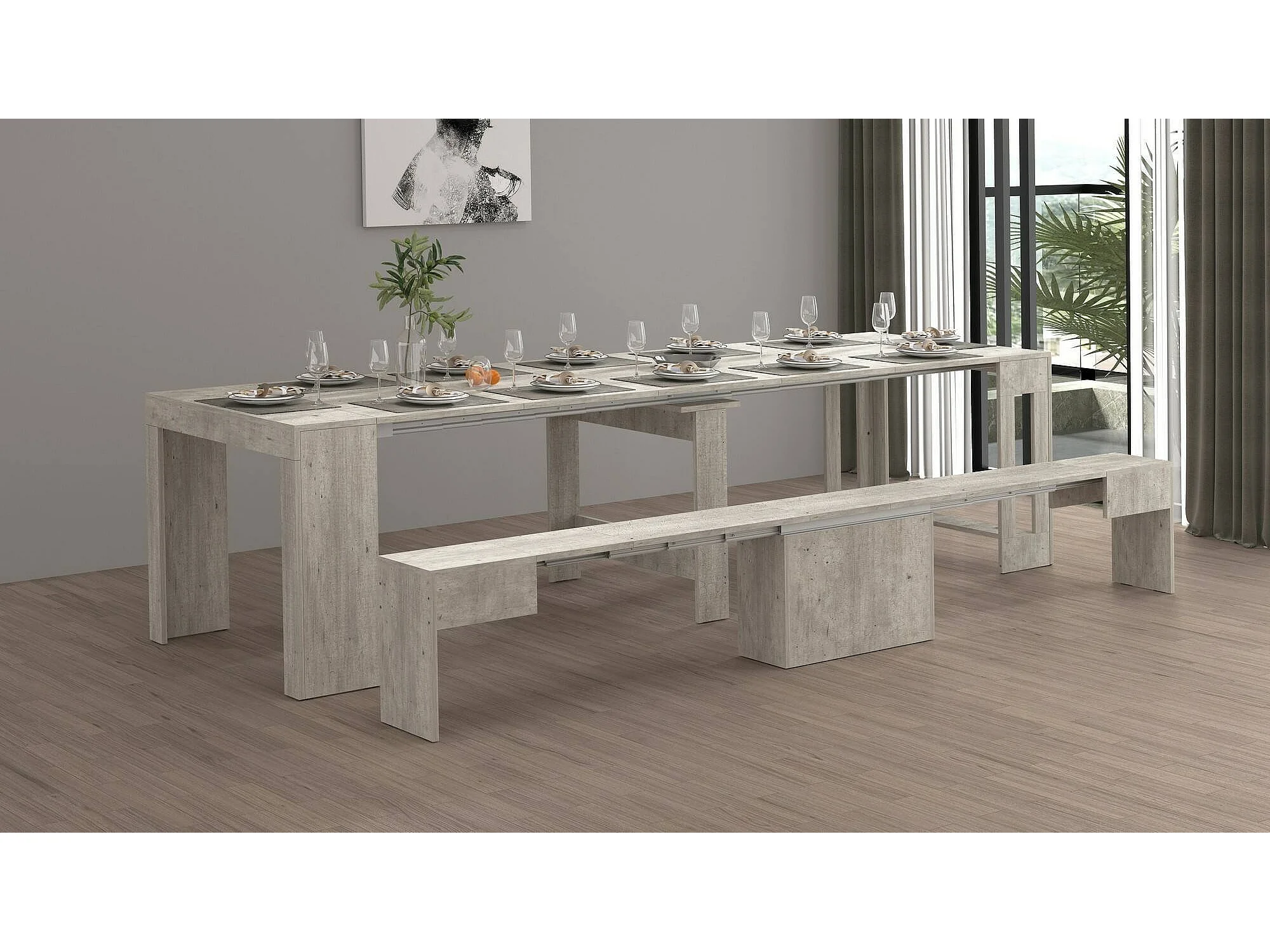 Banc Dollocol, Siège pour table à manger, Banc simple extensible, 290x25h45 cm, Ciment
