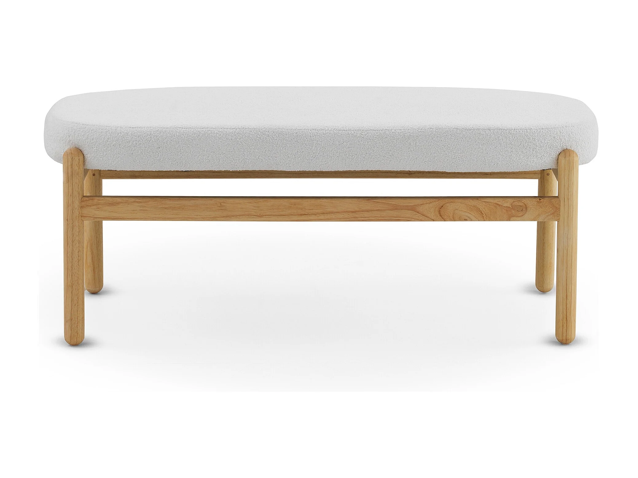Banquette rembourrée en bouclé blanc avec structure et pieds en pin