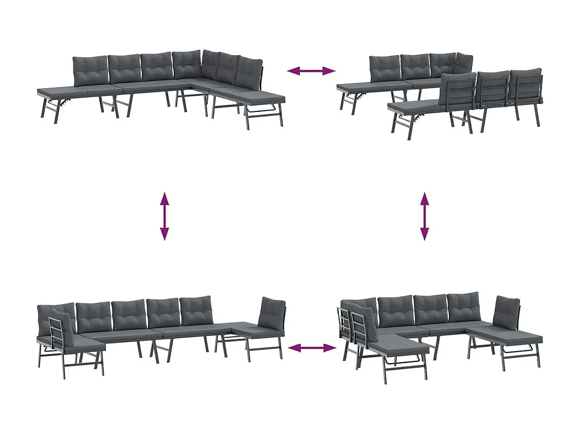 Bancs de jardin avec coussins lot de 4 acier enduit de poudre
