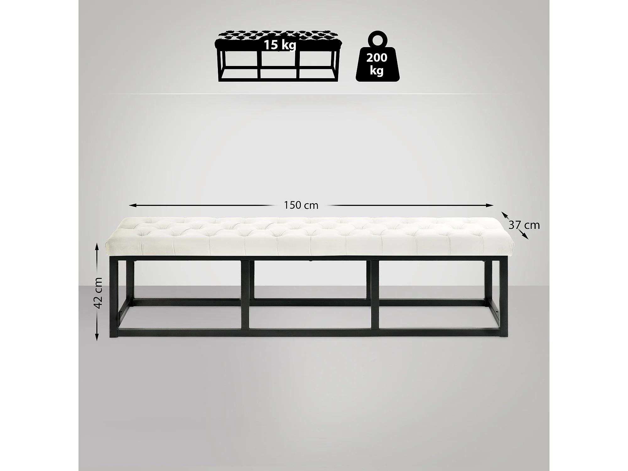 Banquette banc bout de métal crème 120 x 37 x 42 cm 10_0003669