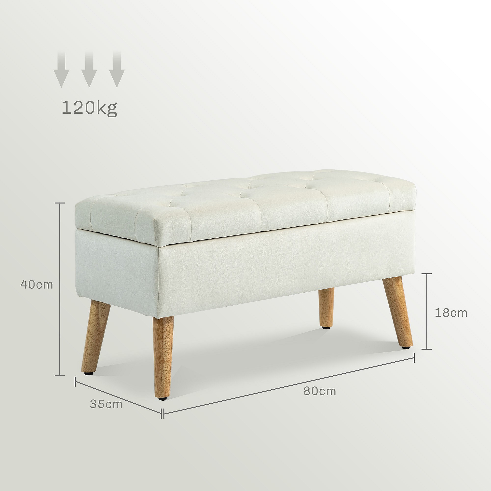 Banc avec compartiment de rangement 80cm Beige Velours