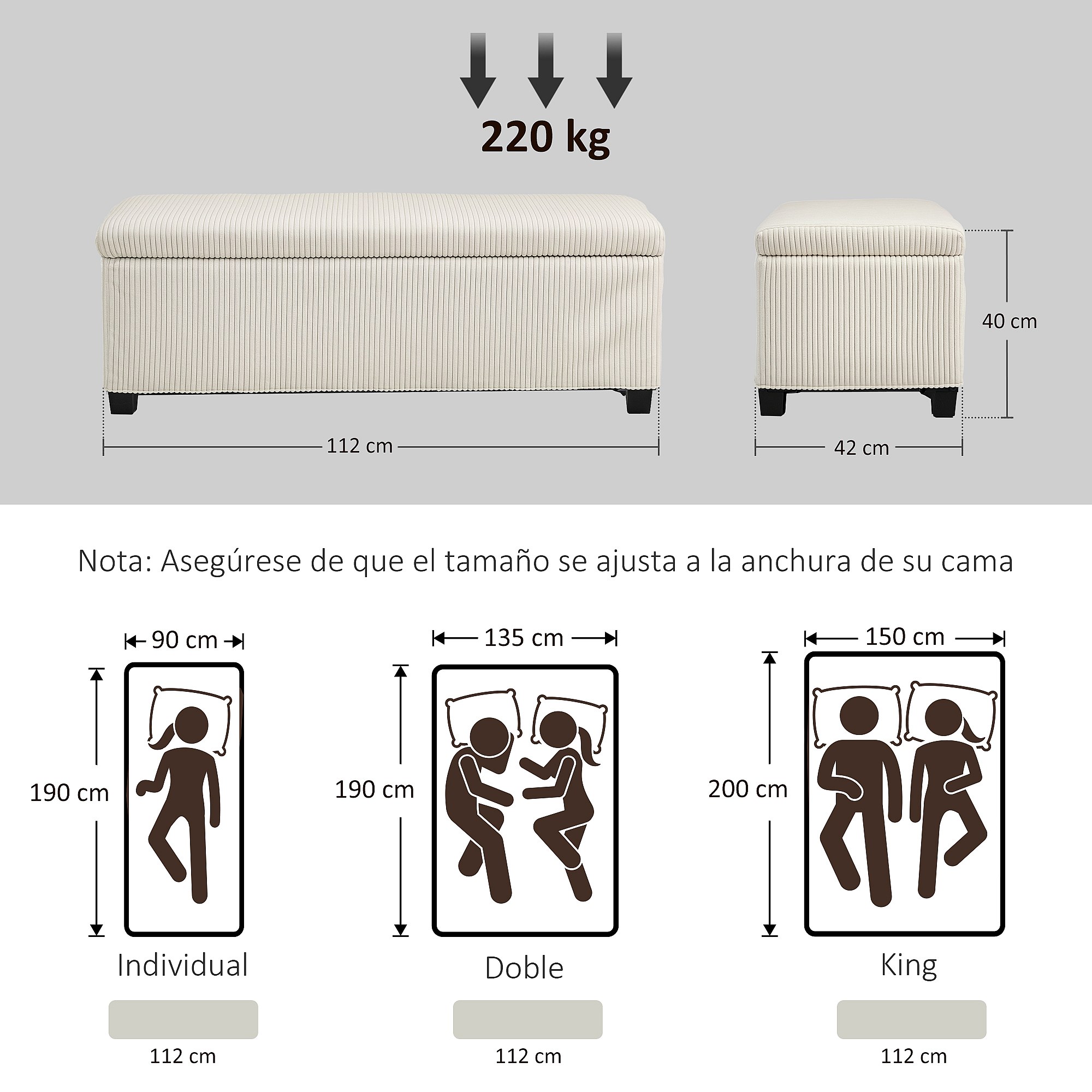 Banquette coffre design velours côtelé - dim. 112 x 42 x 40 cm rangement 84L - beige clair