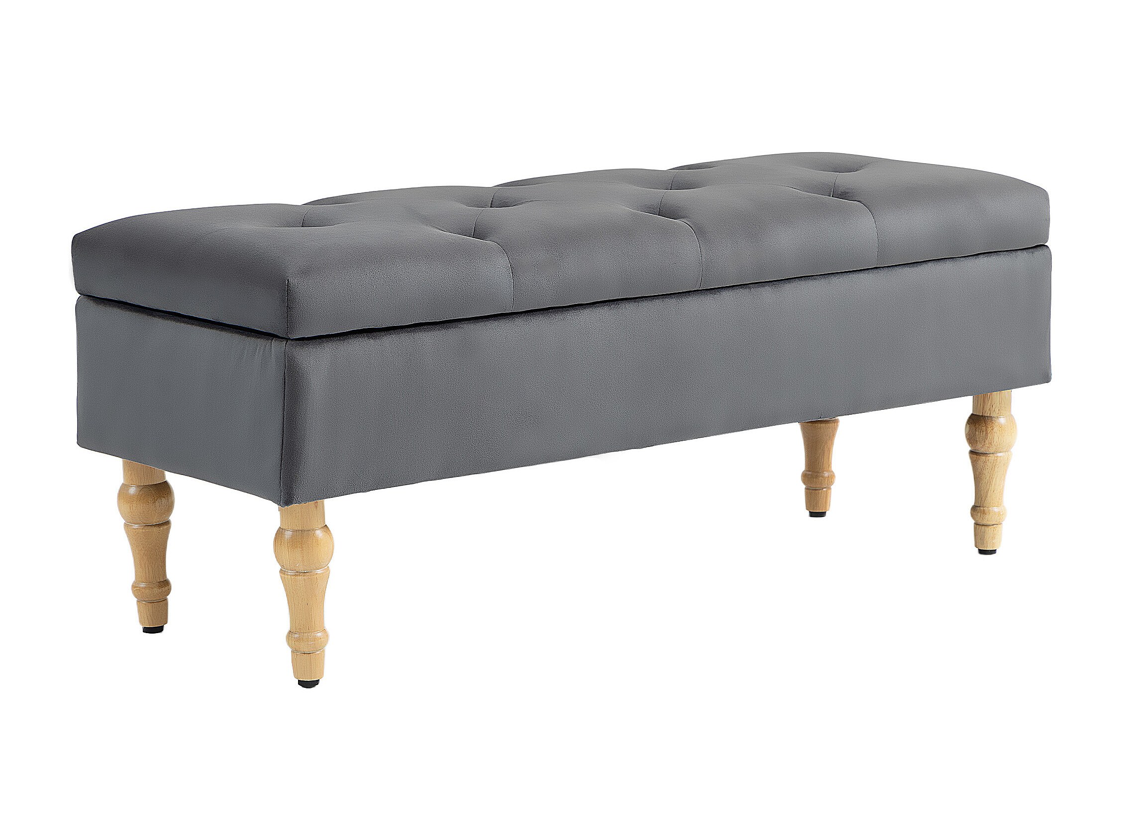 Banquette coffre style baroque - piètement bois assise effet capitonné velours gris