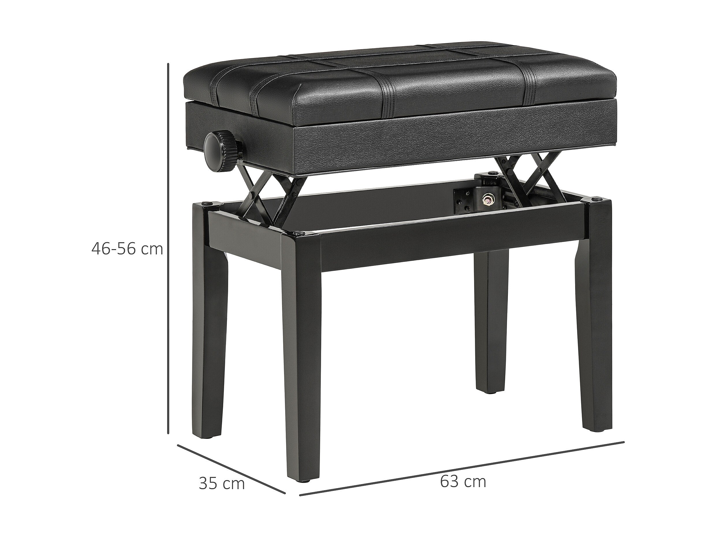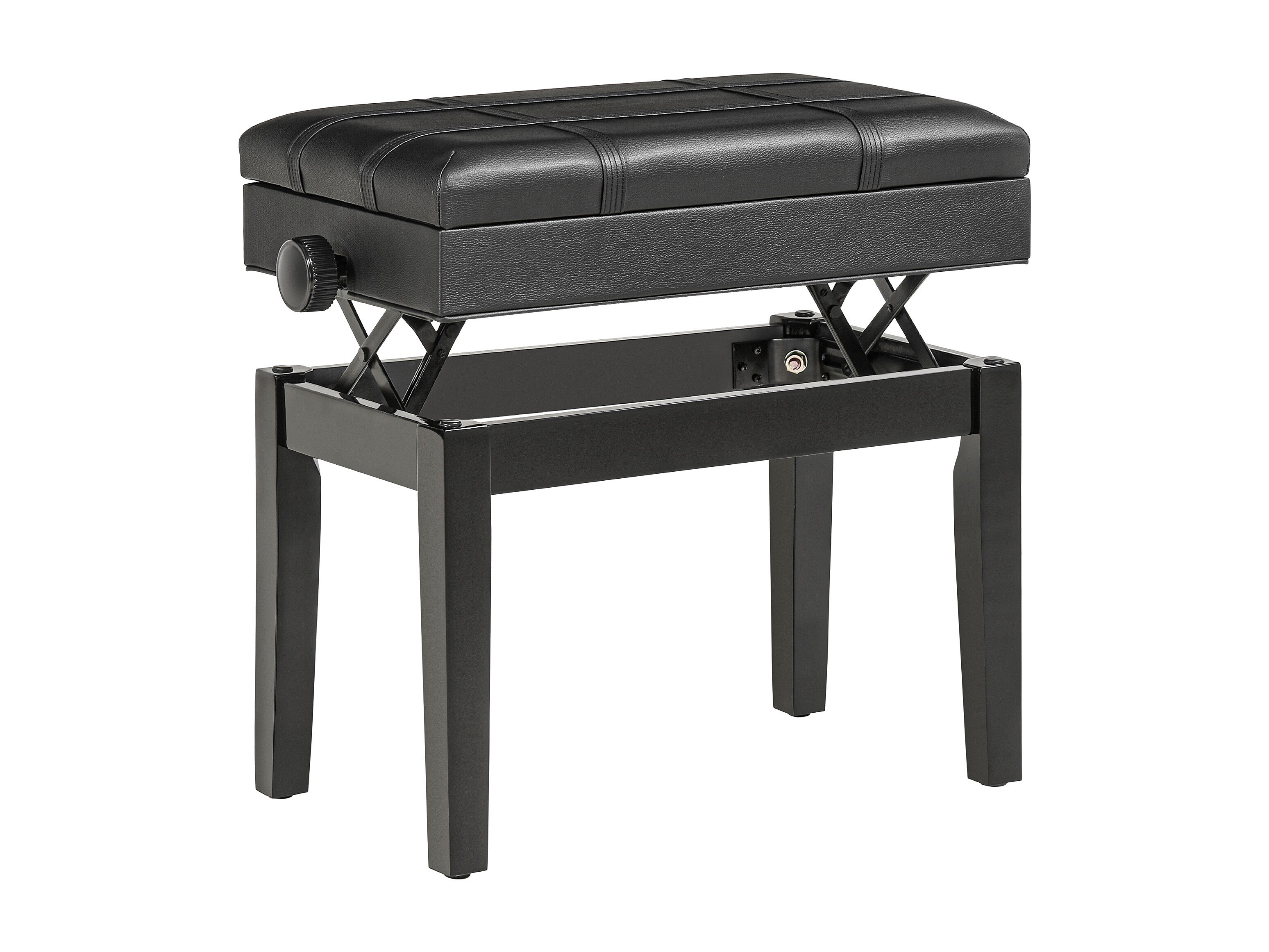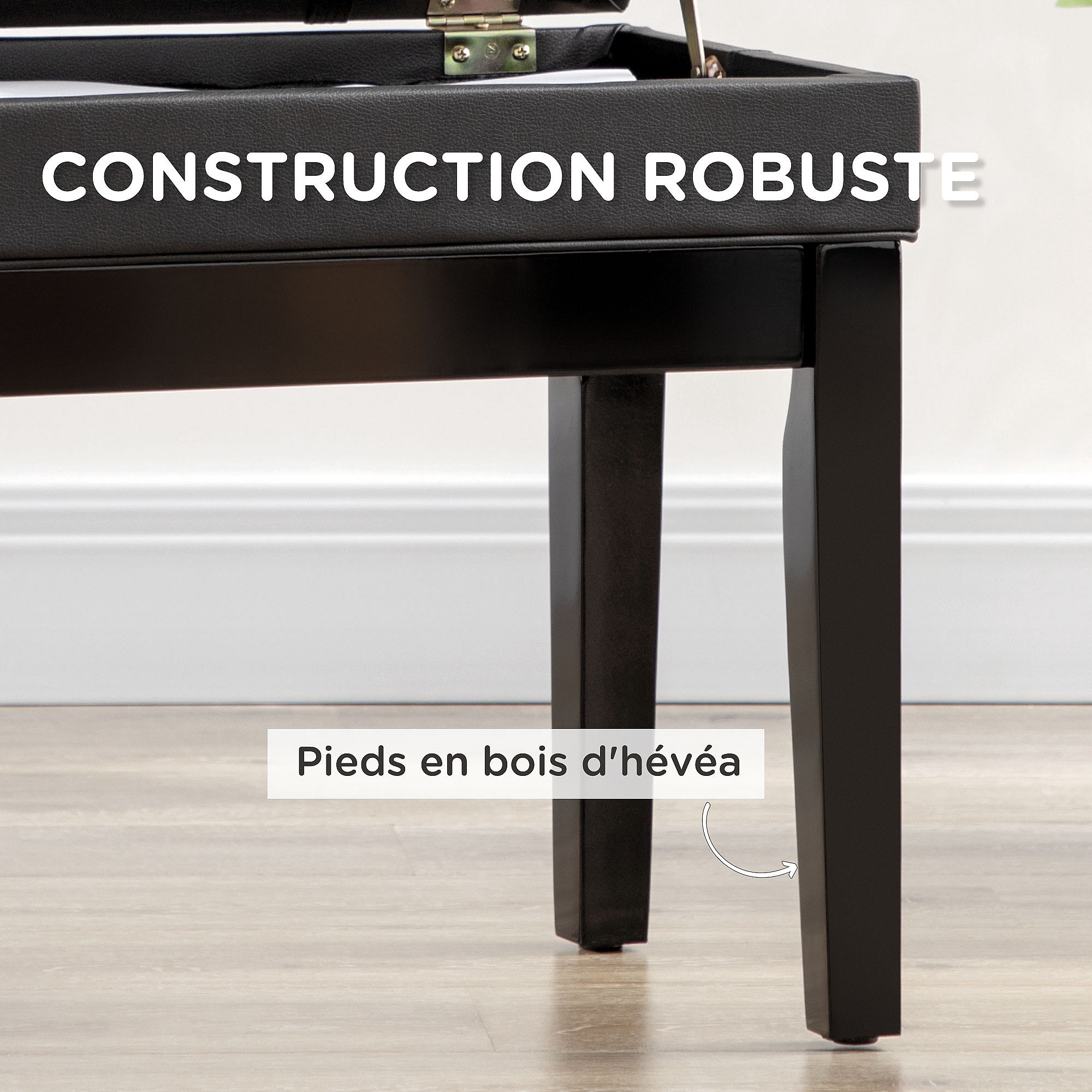 Banquette tabouret siège pour piano coffre intégré hauteur réglable bois hévéa assise revêtement synthétique noir