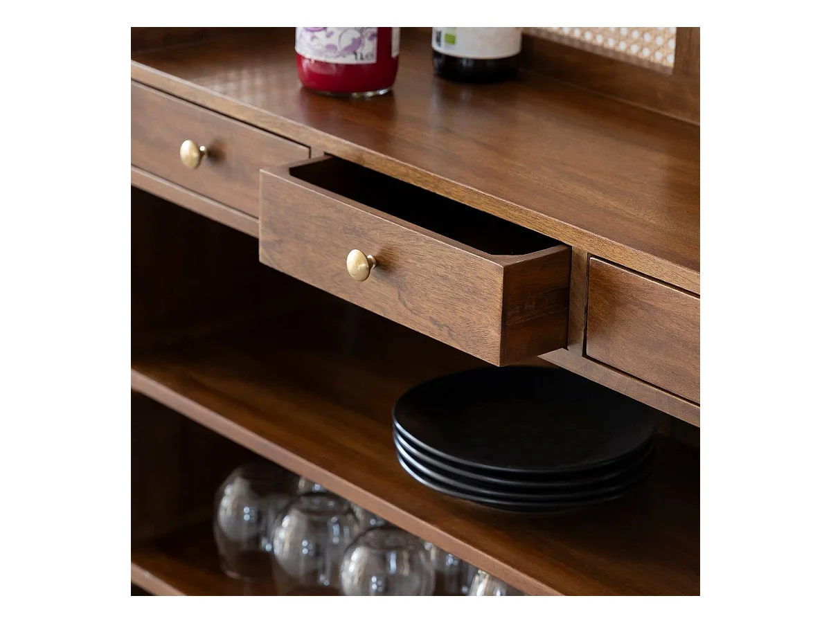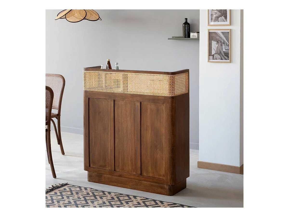 Bar en bois de manguier et cannage Remick