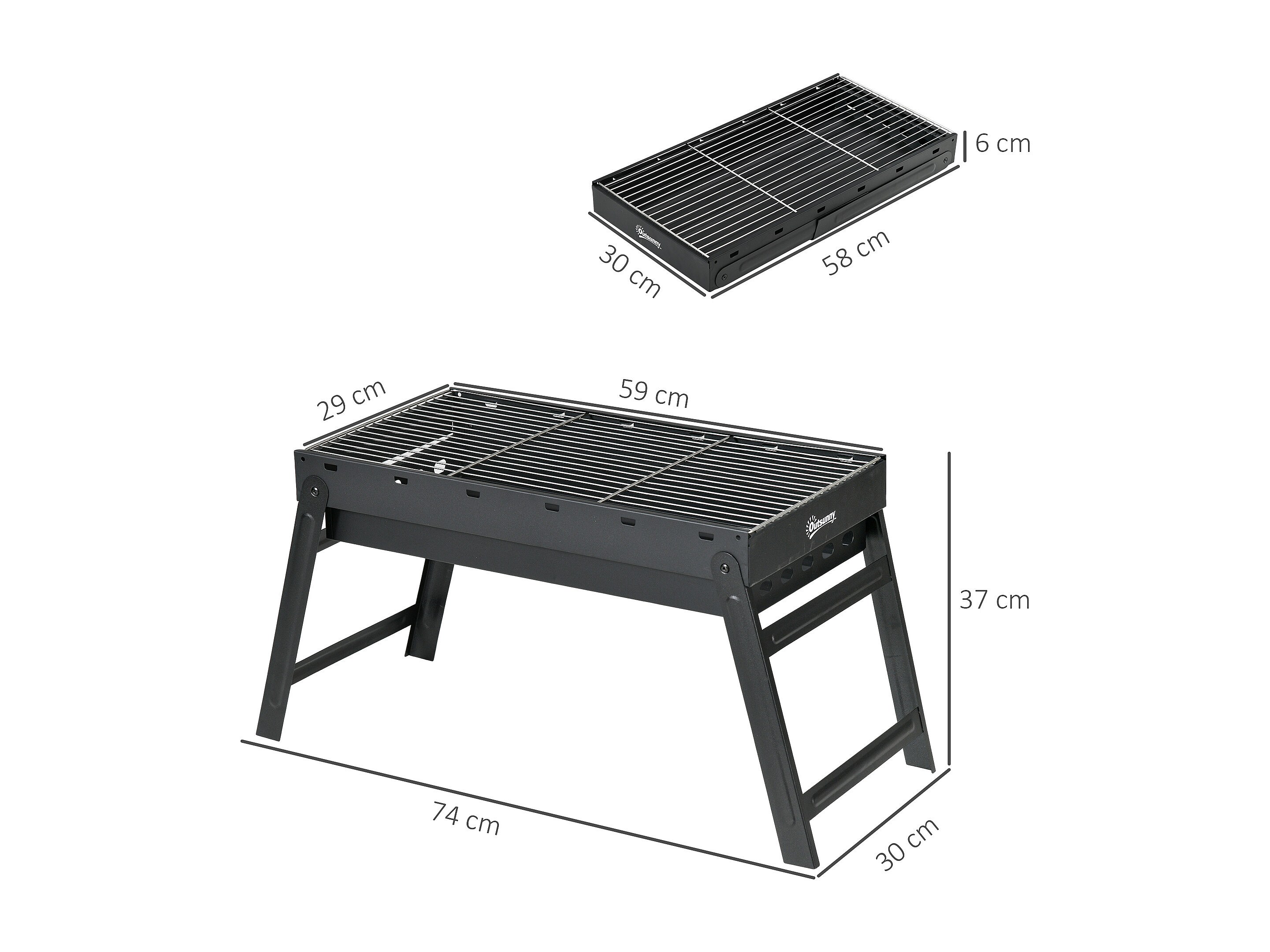 Barbecue à charbon de bois pliable portable dim. 74L x 30l x 37H cm avec grille acier noir