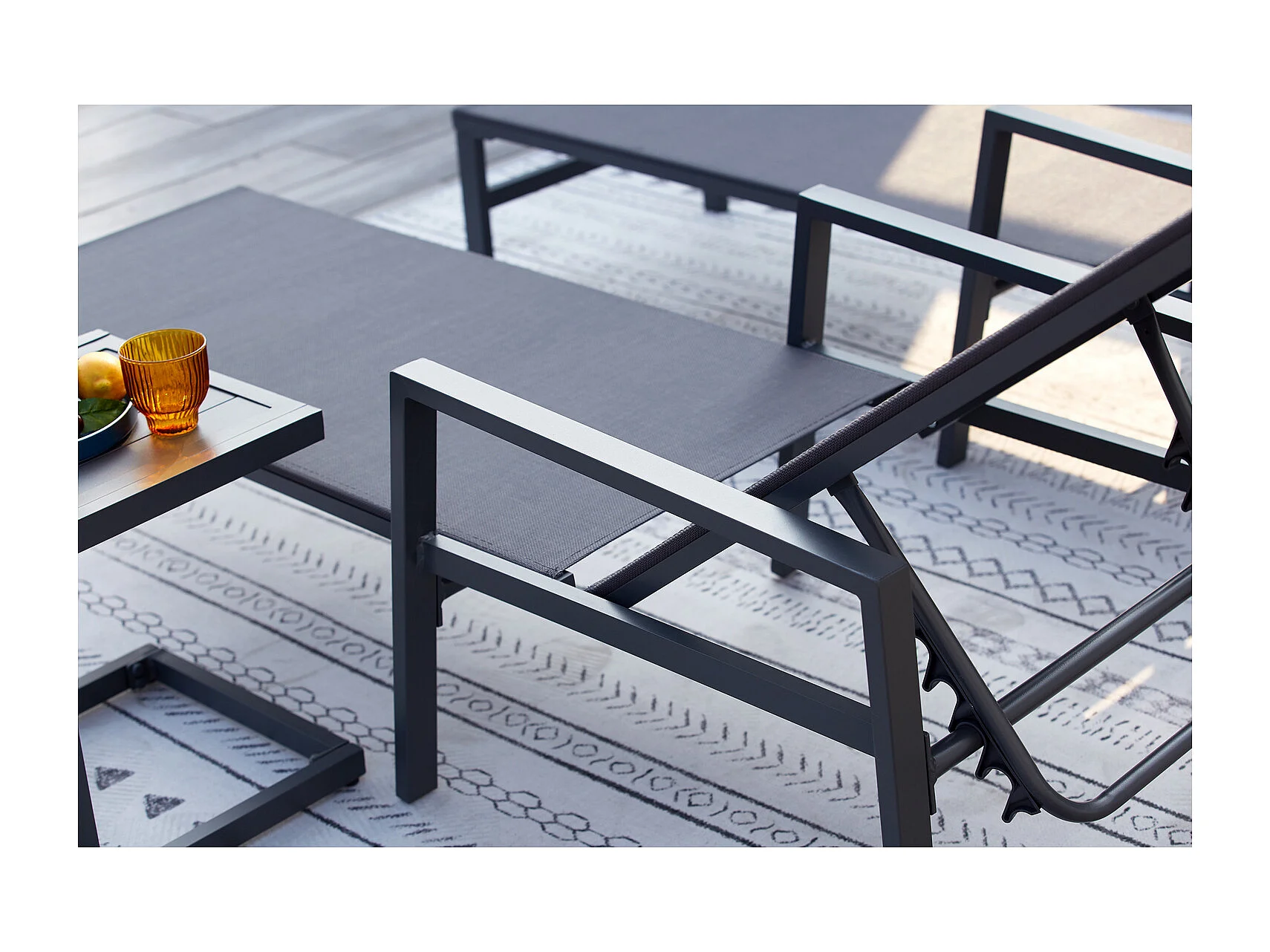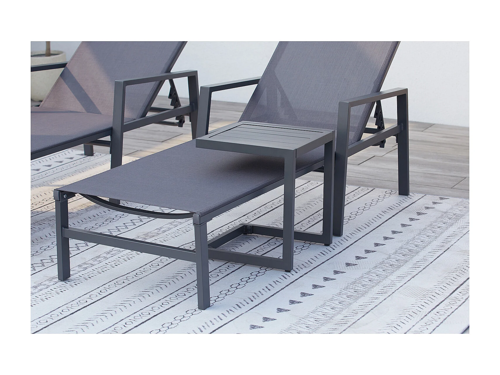 Lot de 2 transats et une table d'appoint gris BARI