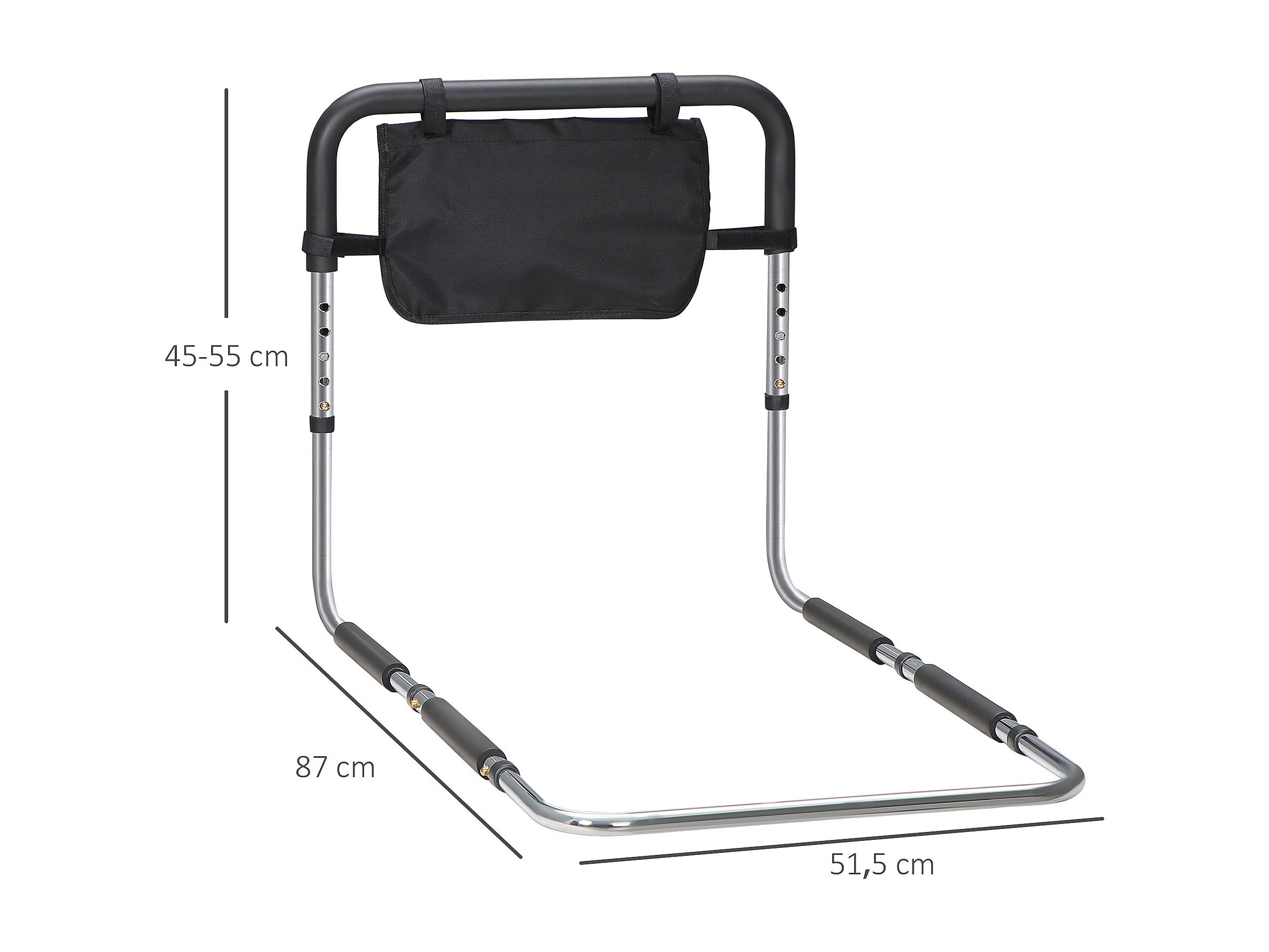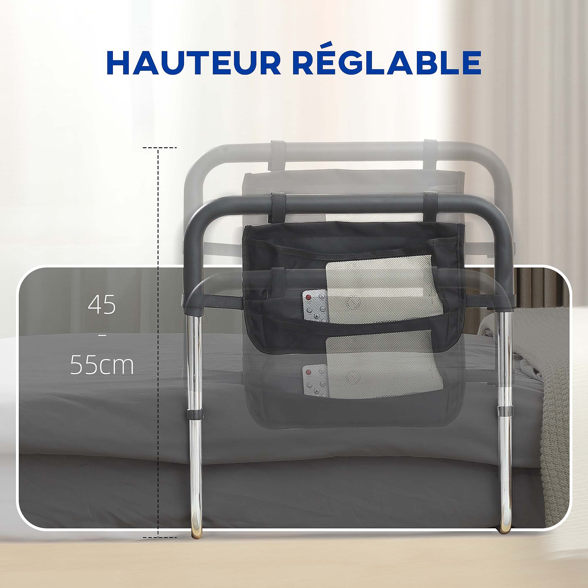 Barre de redressement de lit réglable en hauteur - poignée d'appui pour le lit - barre d'appui de lit avec rangement - acier noir