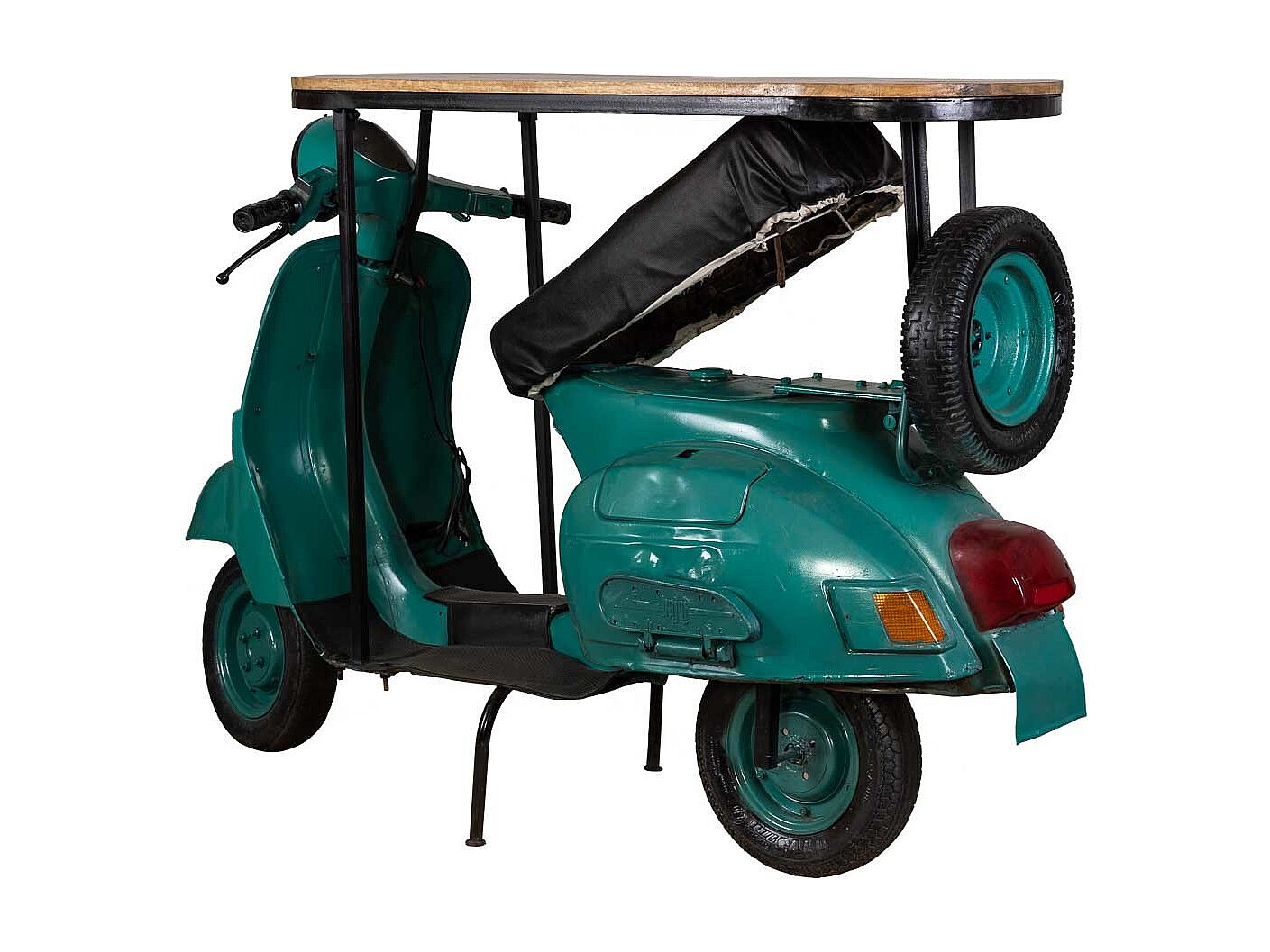 Barre porte-bouteilles moto vespa en métal et bois bleu 185x66x115h
