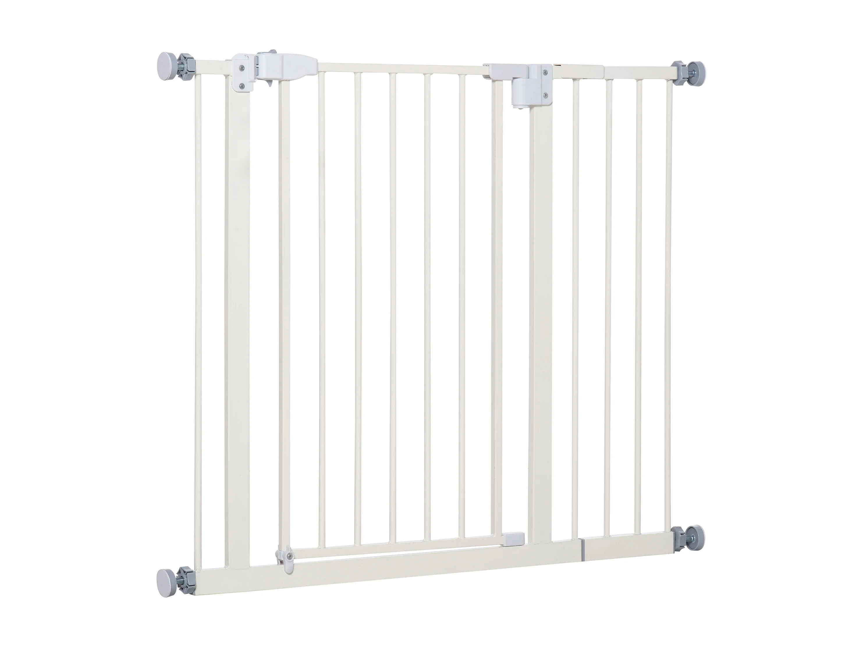 Barrière de sécurité animaux - longueur réglable dim. 74-97,5 cm - porte double verrouillage, ouverture double sens -sans perçage - acier plastique blanc