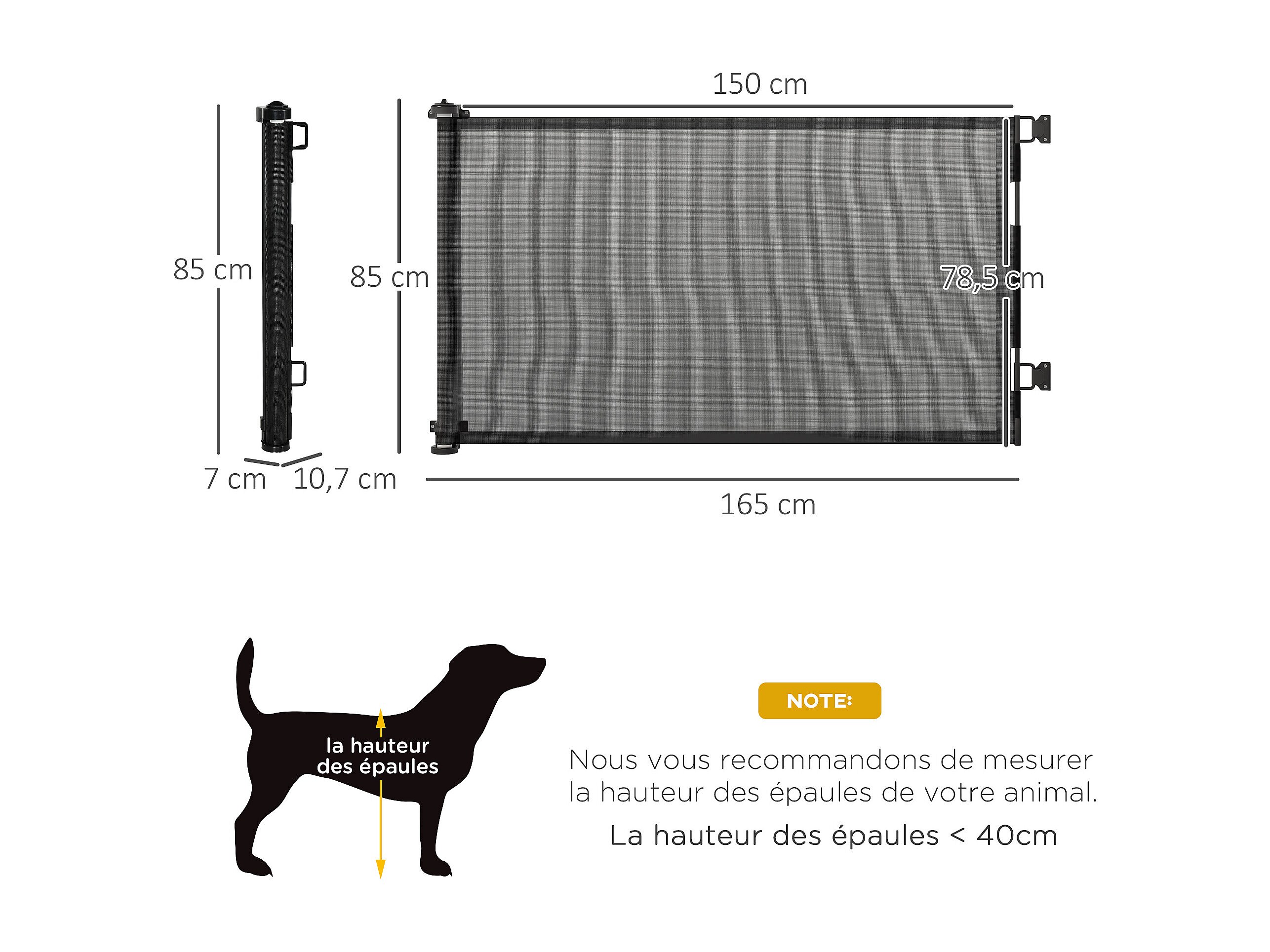 Barrière de sécurité barrière animaux rétractable automatique 1,65L x 0,85H m teslin alu. PVC noir