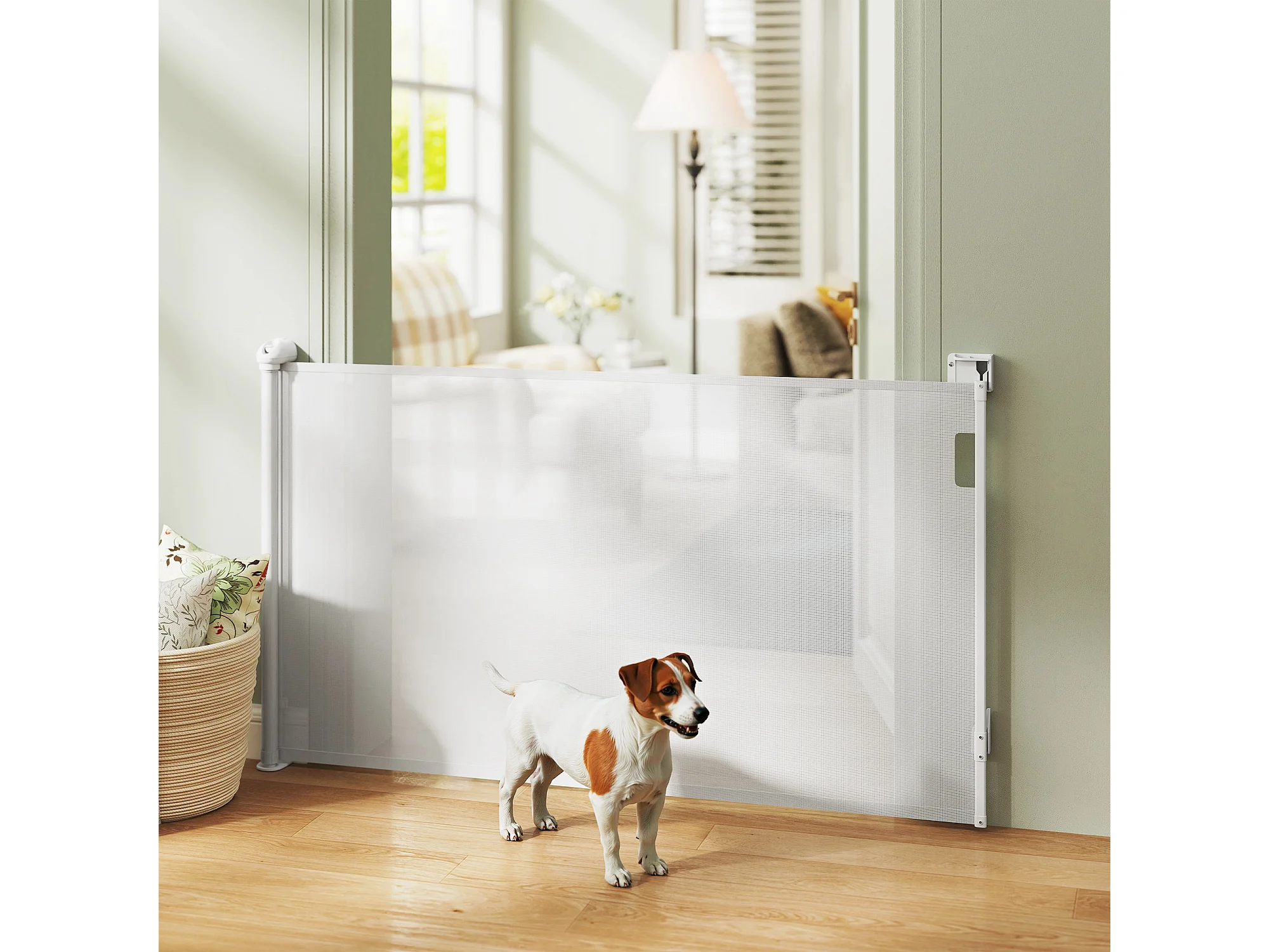 Barrière de sécurité chien rétractable 0-140 cm H.86 cm verrouillage auto alu PVC blanc