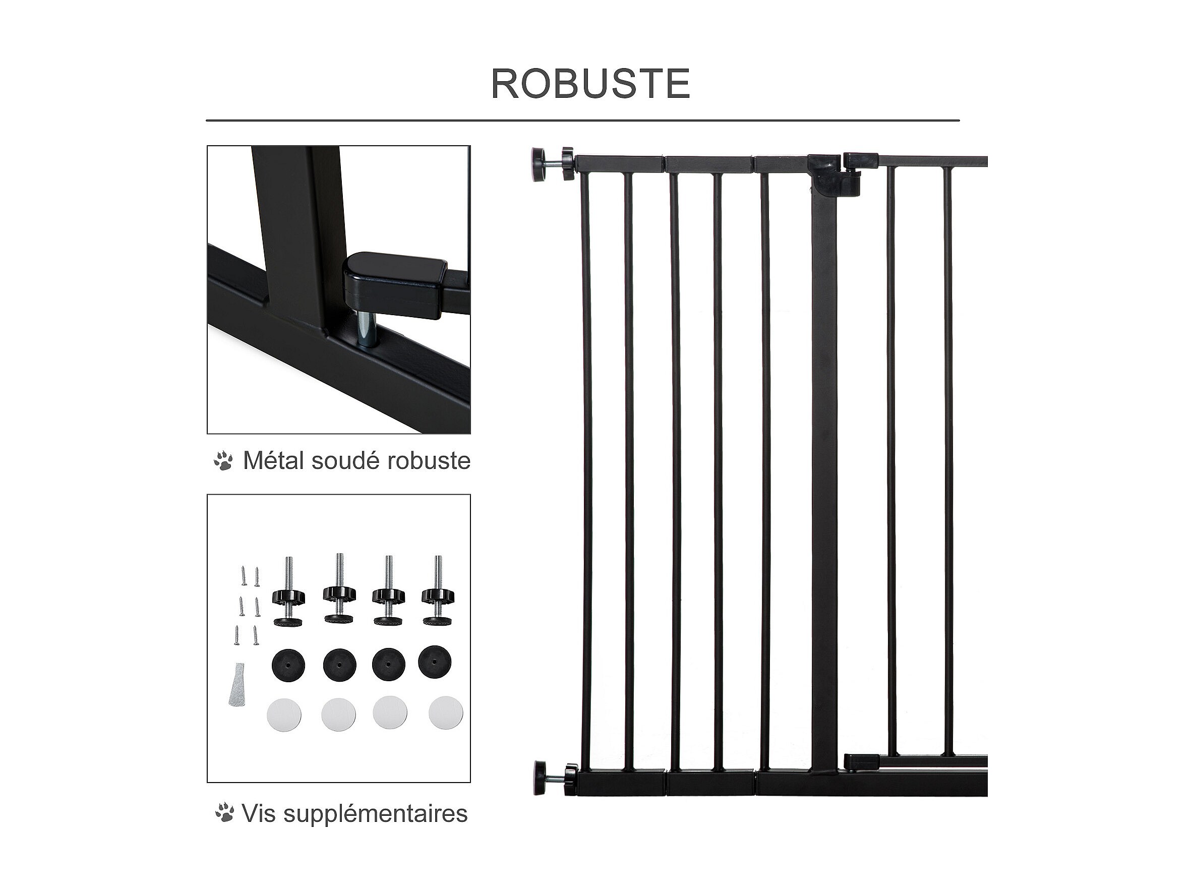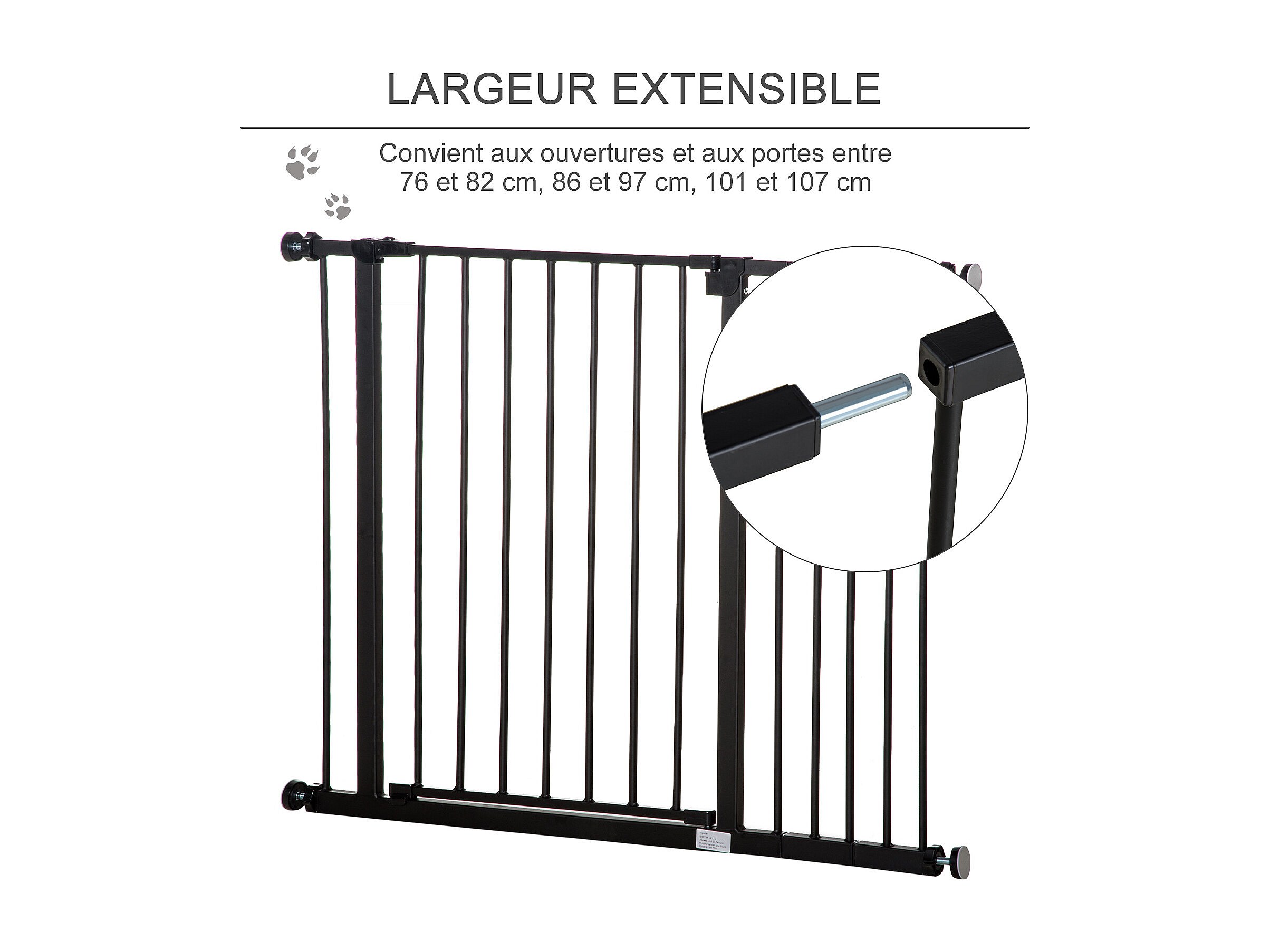 Barrière de sécurité pour chien - barrière à pression extensible - double système de verrouillage - acier noir