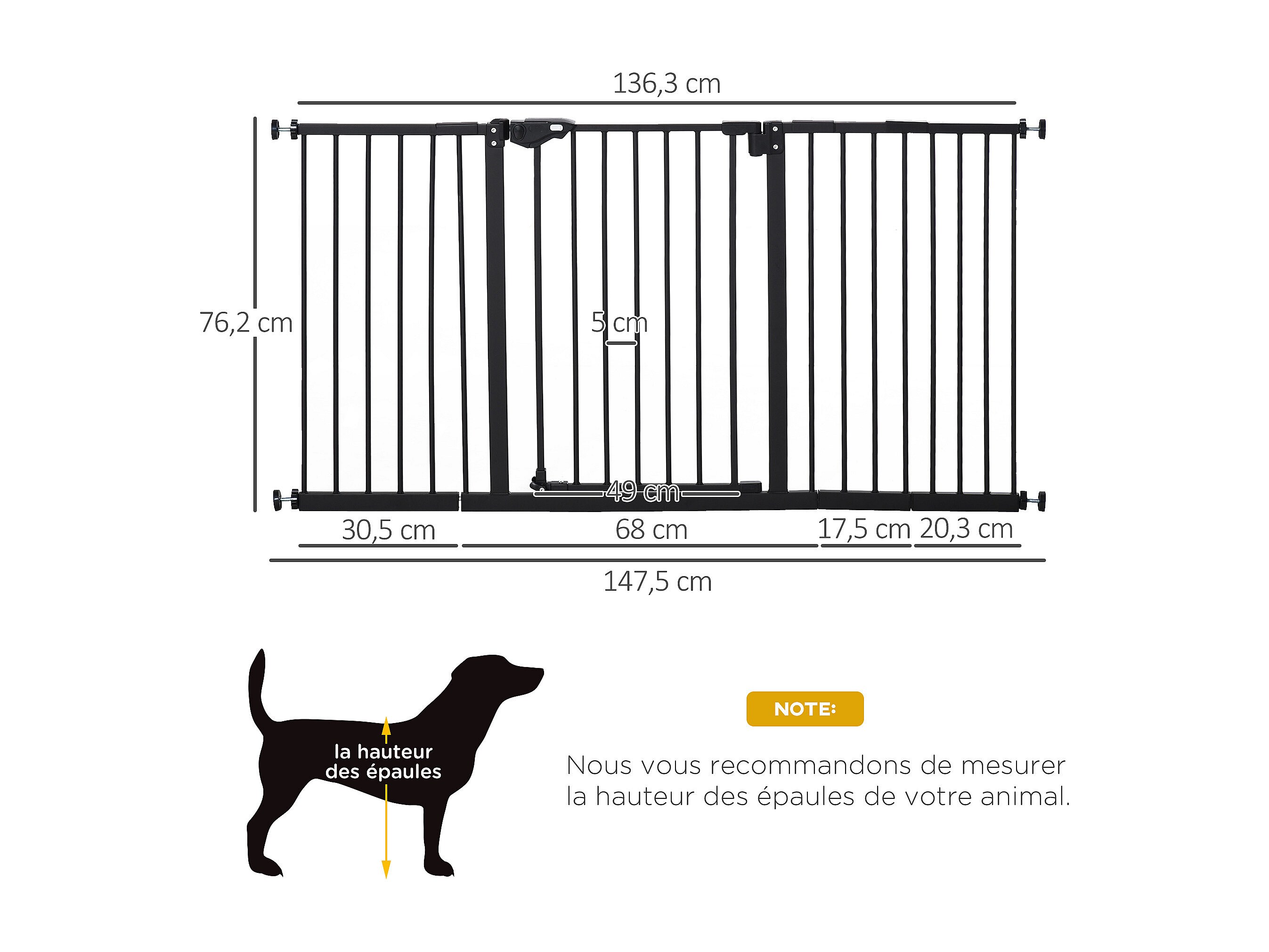 Barrière de sécurité pour chien - barrière à pression extensible - double système de verrouillage - acier noir