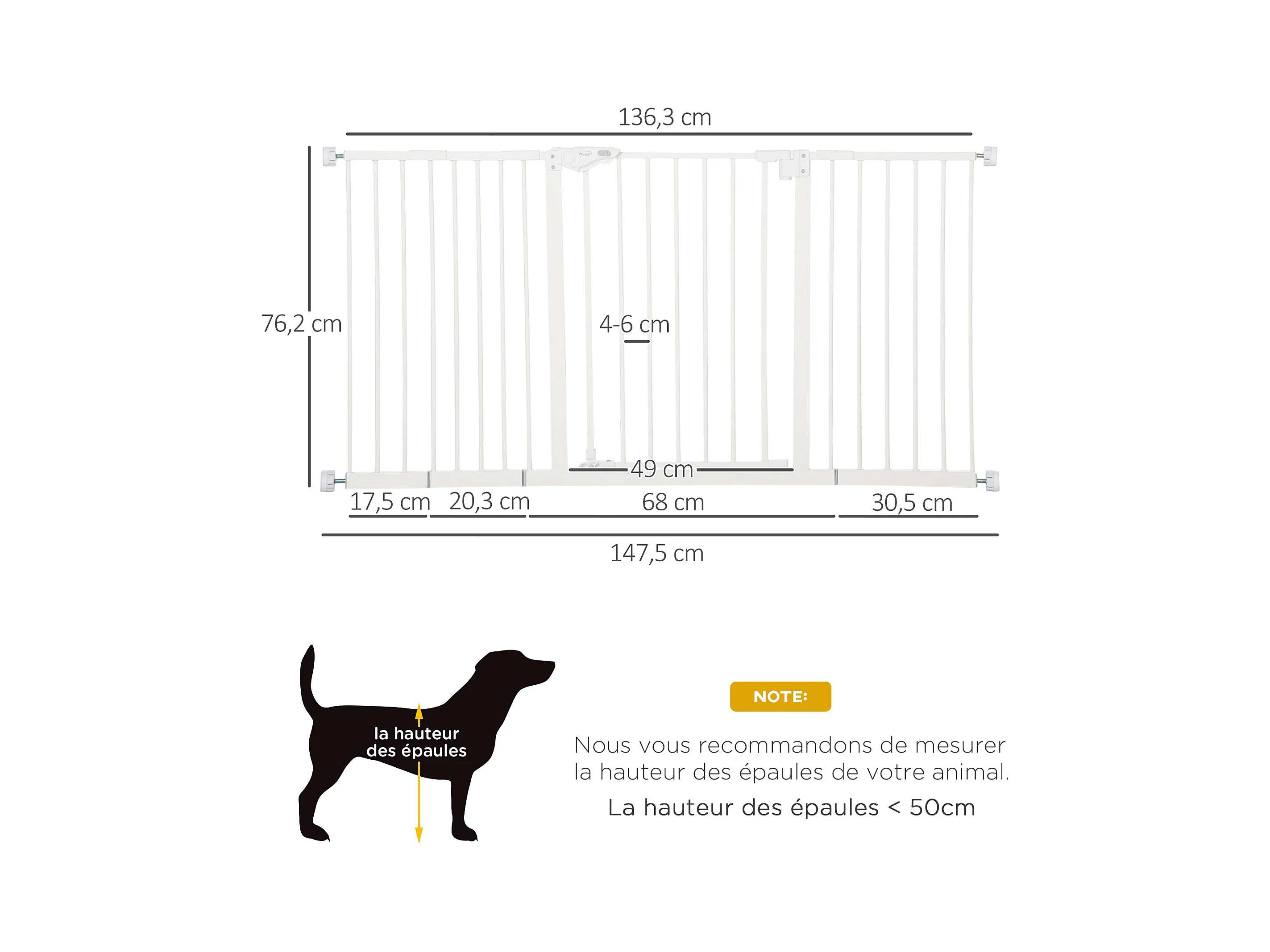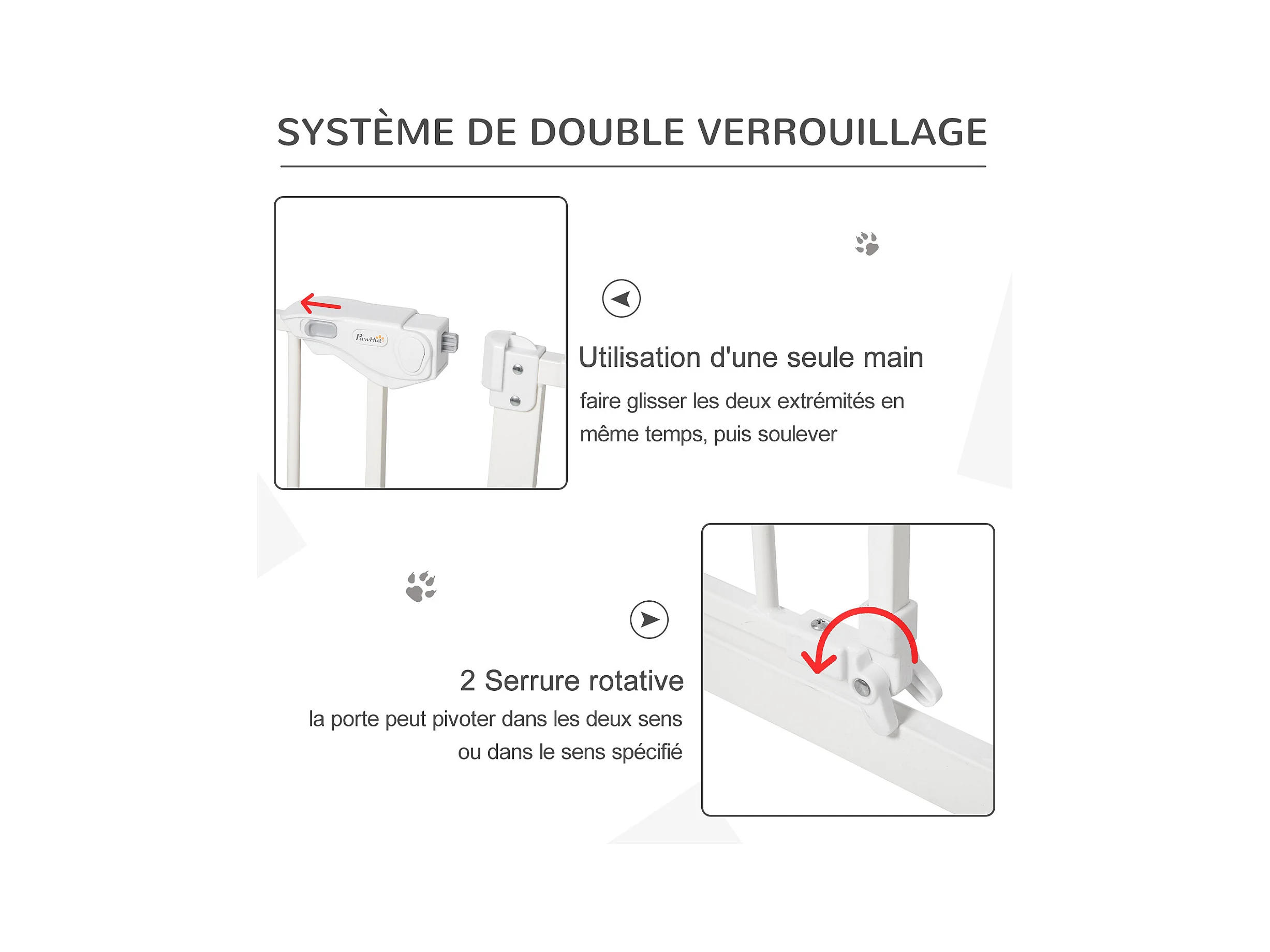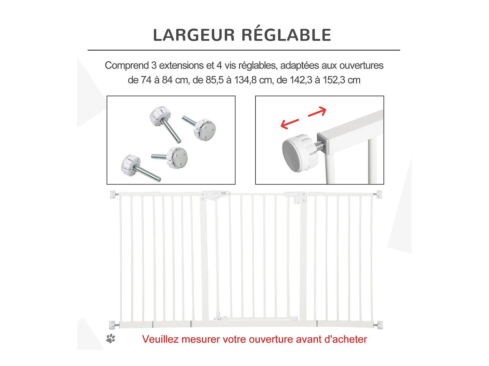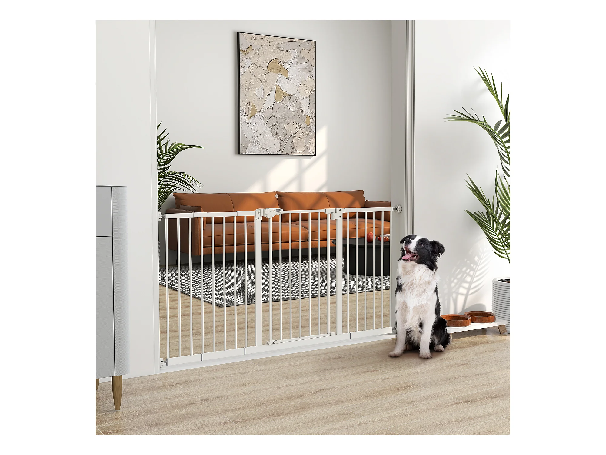 Barrière de sécurité pliable pour chien - 3 panneaux, porte verrouillable - dim. 206L x 120H cm - acier PP blanc