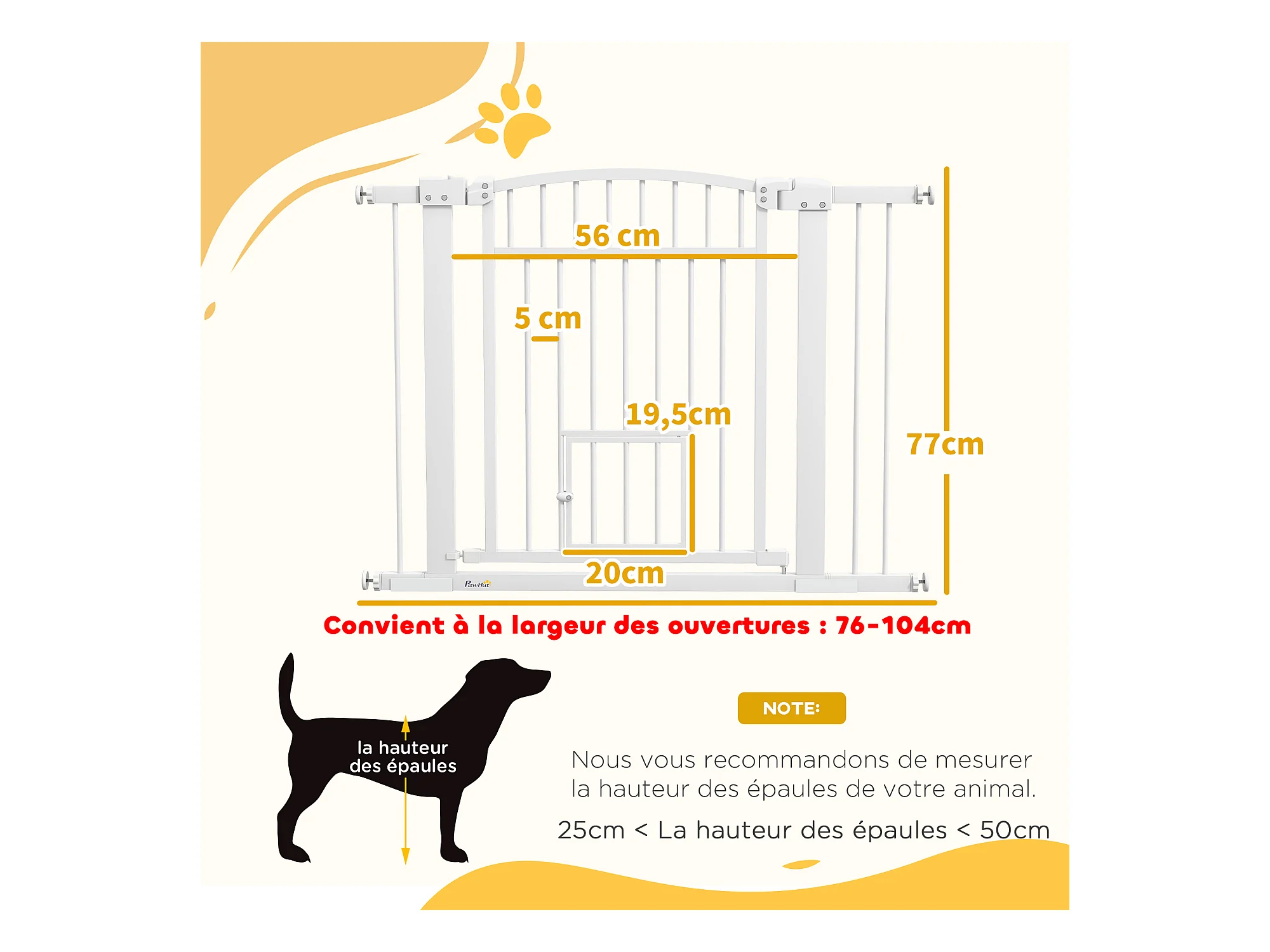 Barrière de sécurité animaux réglable 76-103L cm - porte 2 verrouillages, ouverture 2 sens - acier ABS blanc