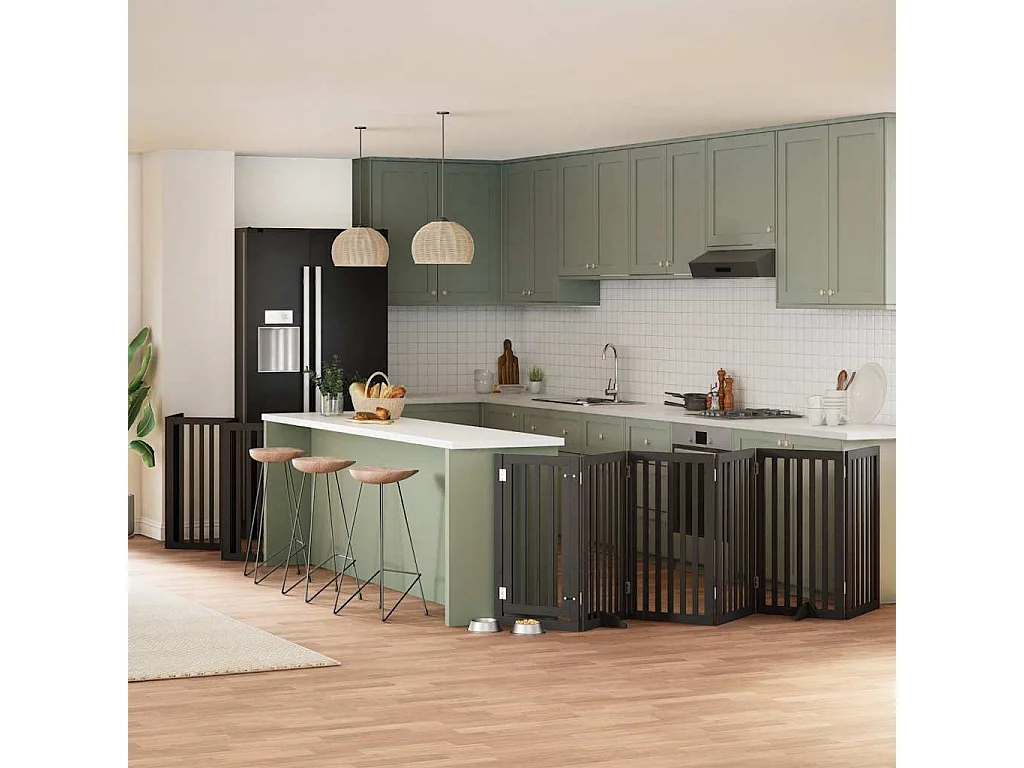 Barrière pour chien porte pliable 12 panneaux noir bois peuplier