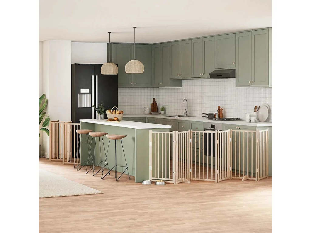 Barrière pour chien porte pliable 15 panneaux bois de peuplier