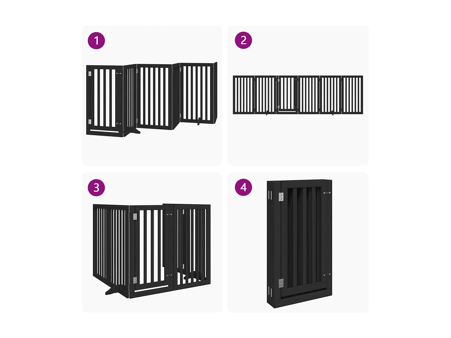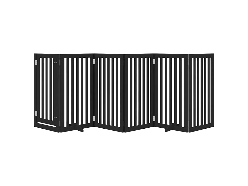 Barrière pour chiens et porte 6 panneaux noir bois de peuplier