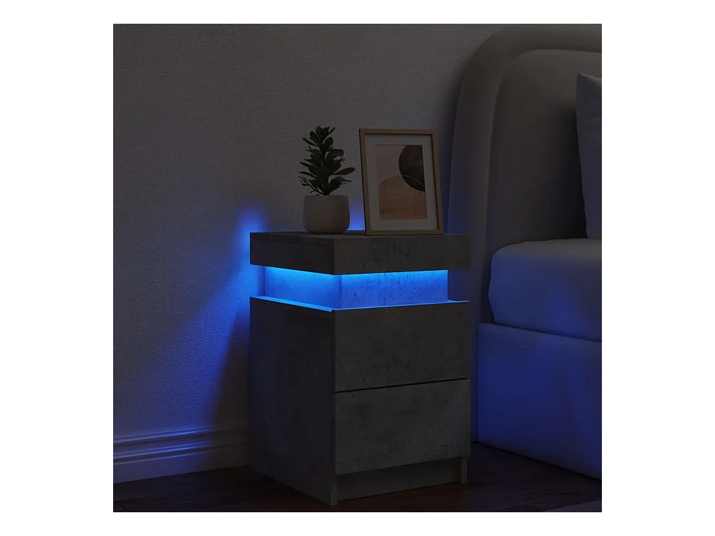 Bishop Table de chevet avec lumières LED gris béton 50x40x45 cm