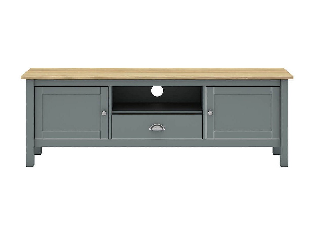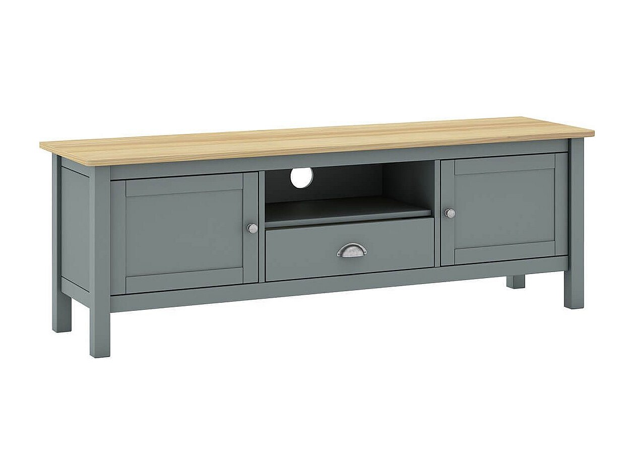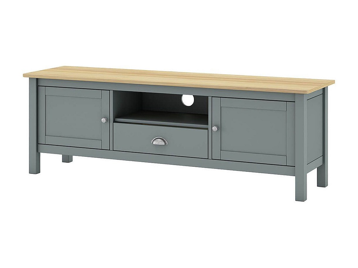 BASCO - Meuble TV 2 Portes 1 Tiroir en Pin Massif Naturel et Vert Céladon