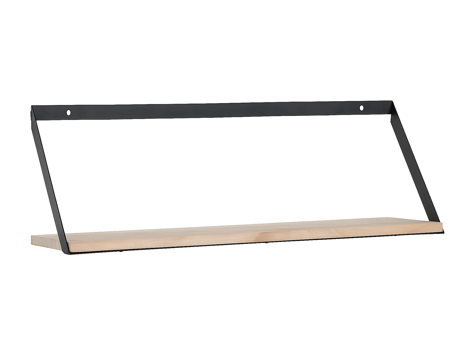 BASIK - Etagère Murale Simple en Bois et Métal Noir