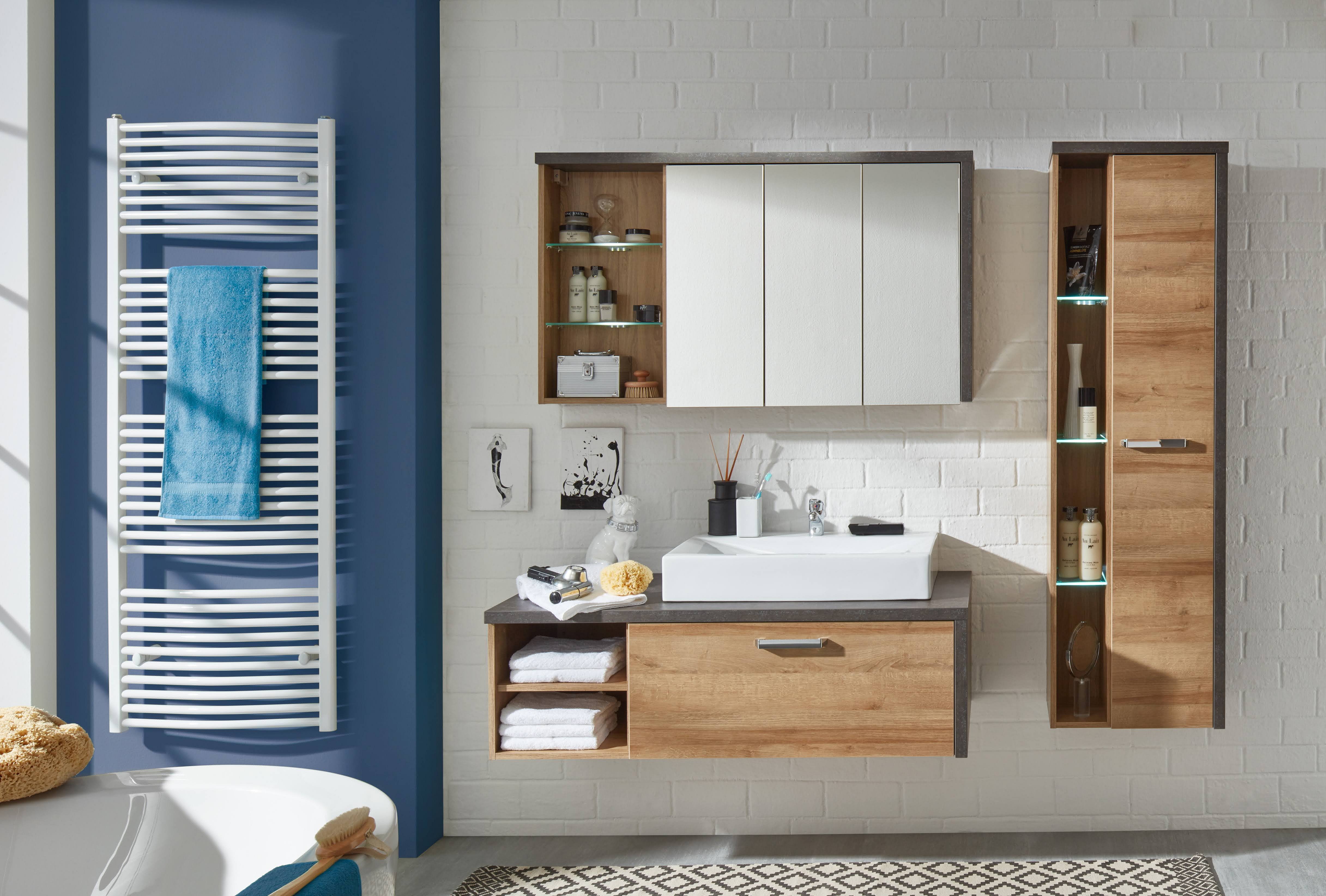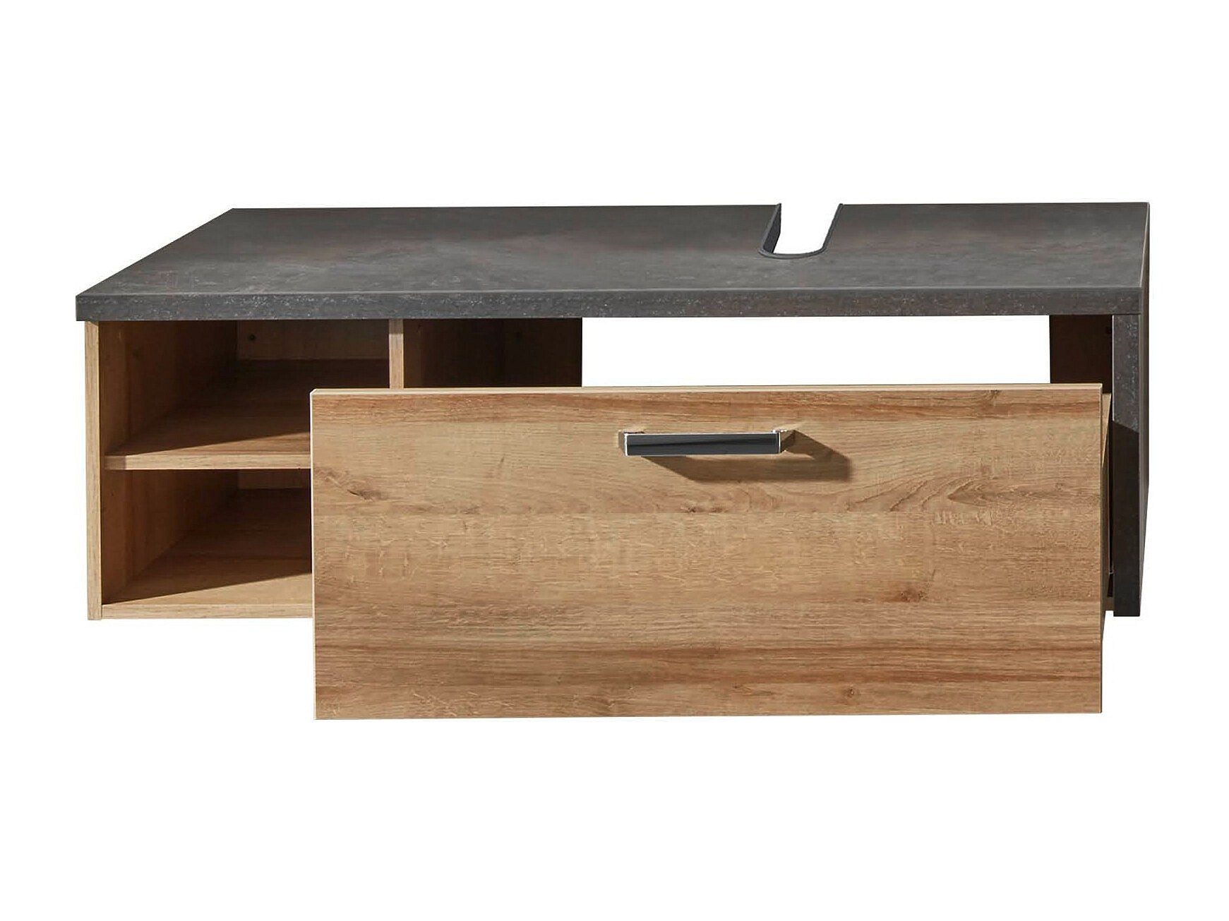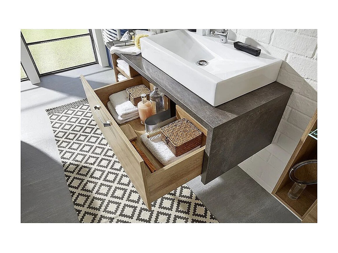 Meuble sous vasque suspendu 1 tiroir gris béton et chêne Riviera miel Babel 123cm