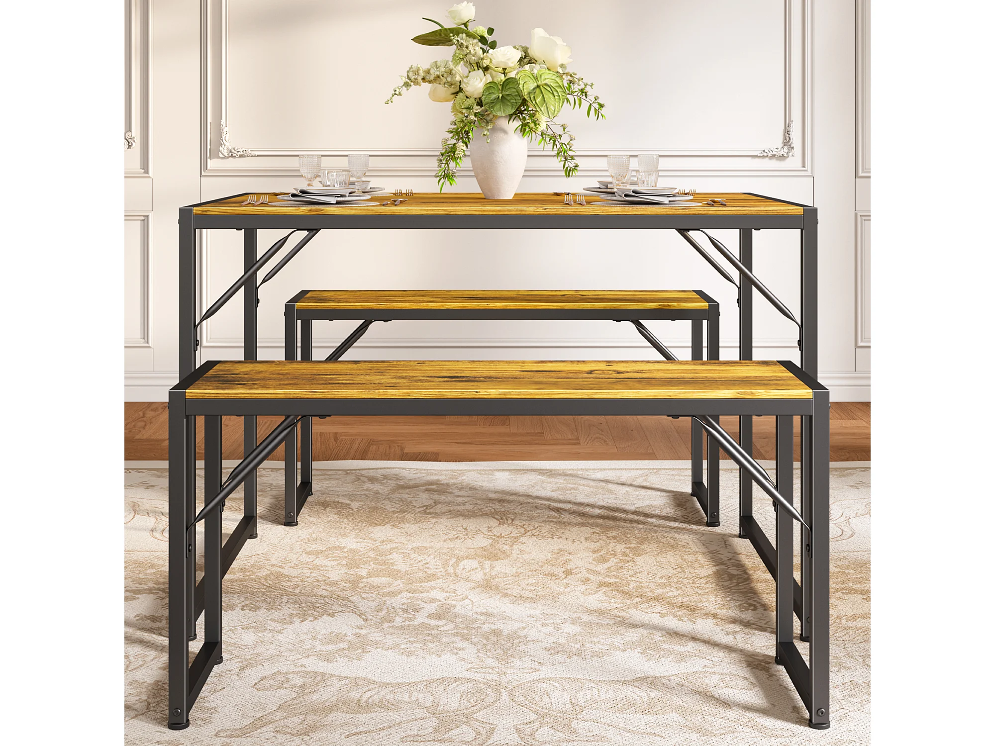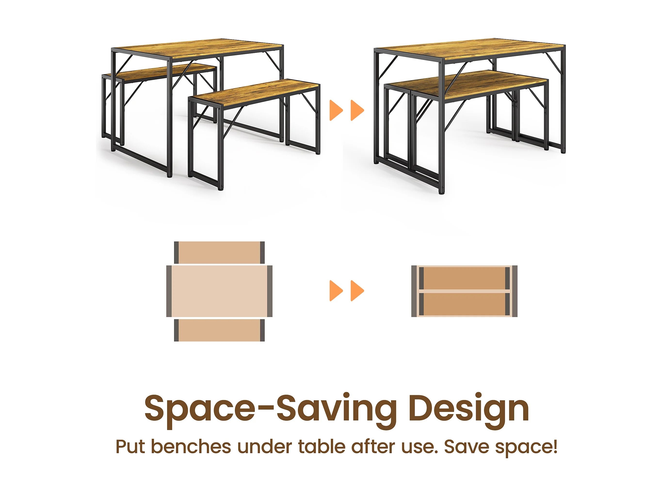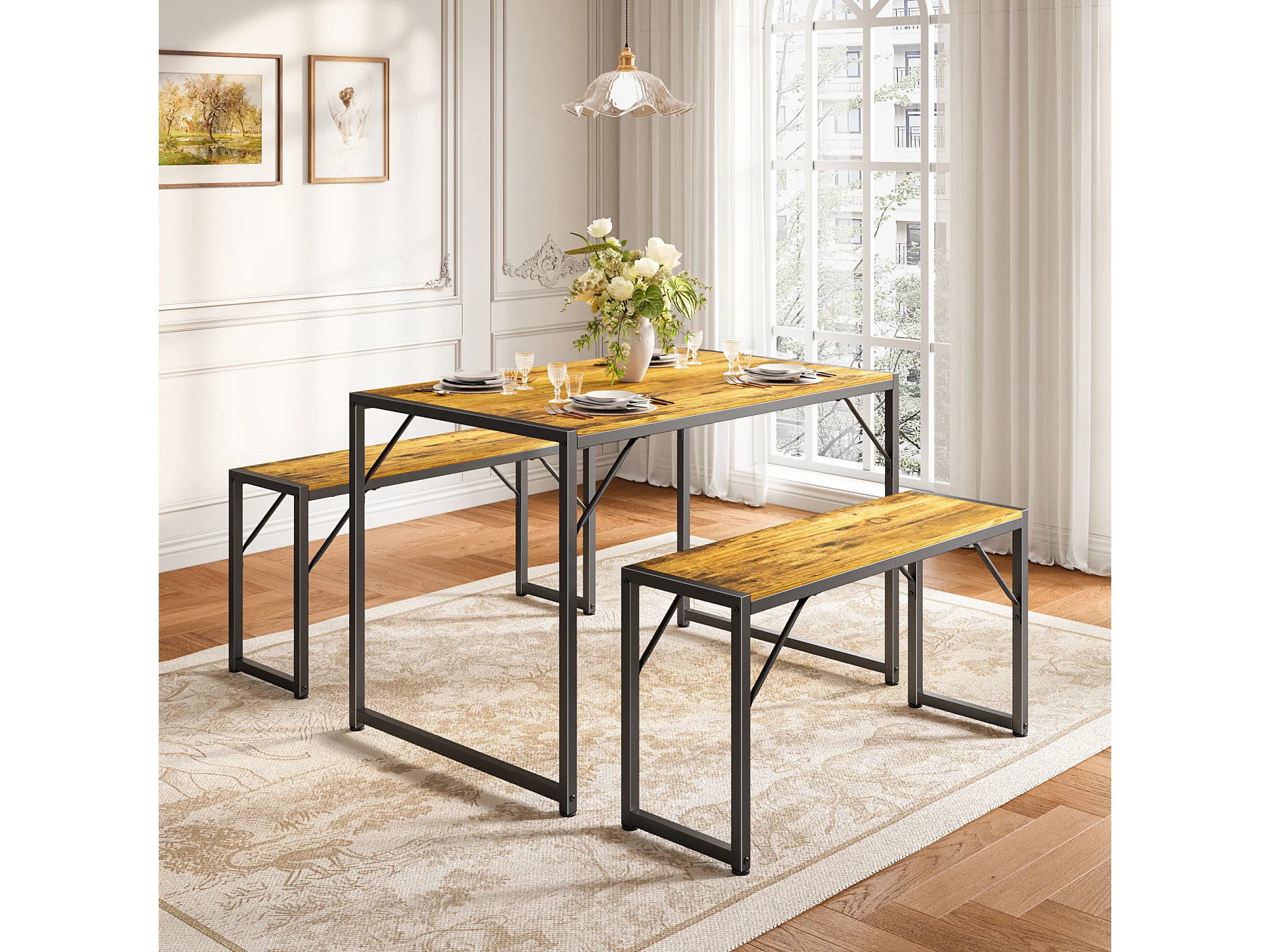 Bealife Ensemble Table de Cuisine Cadre Métal avec 2 Bancs - Retro