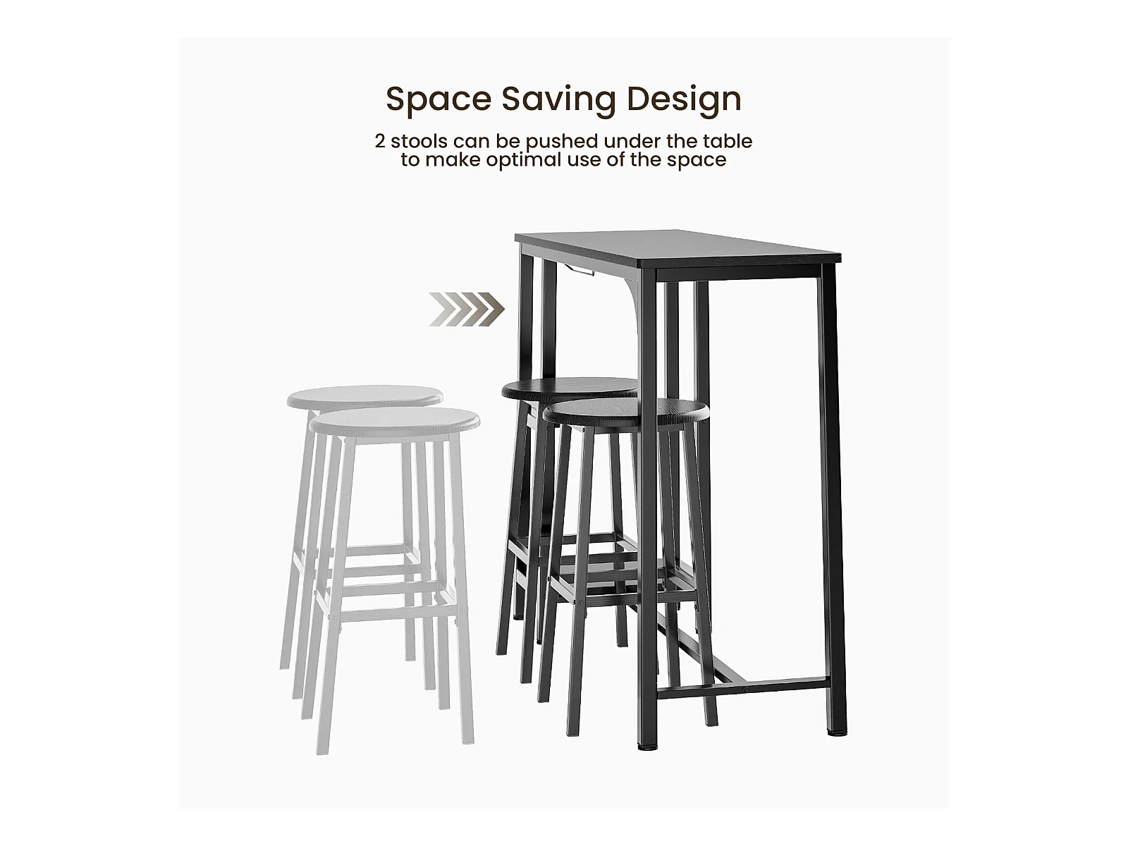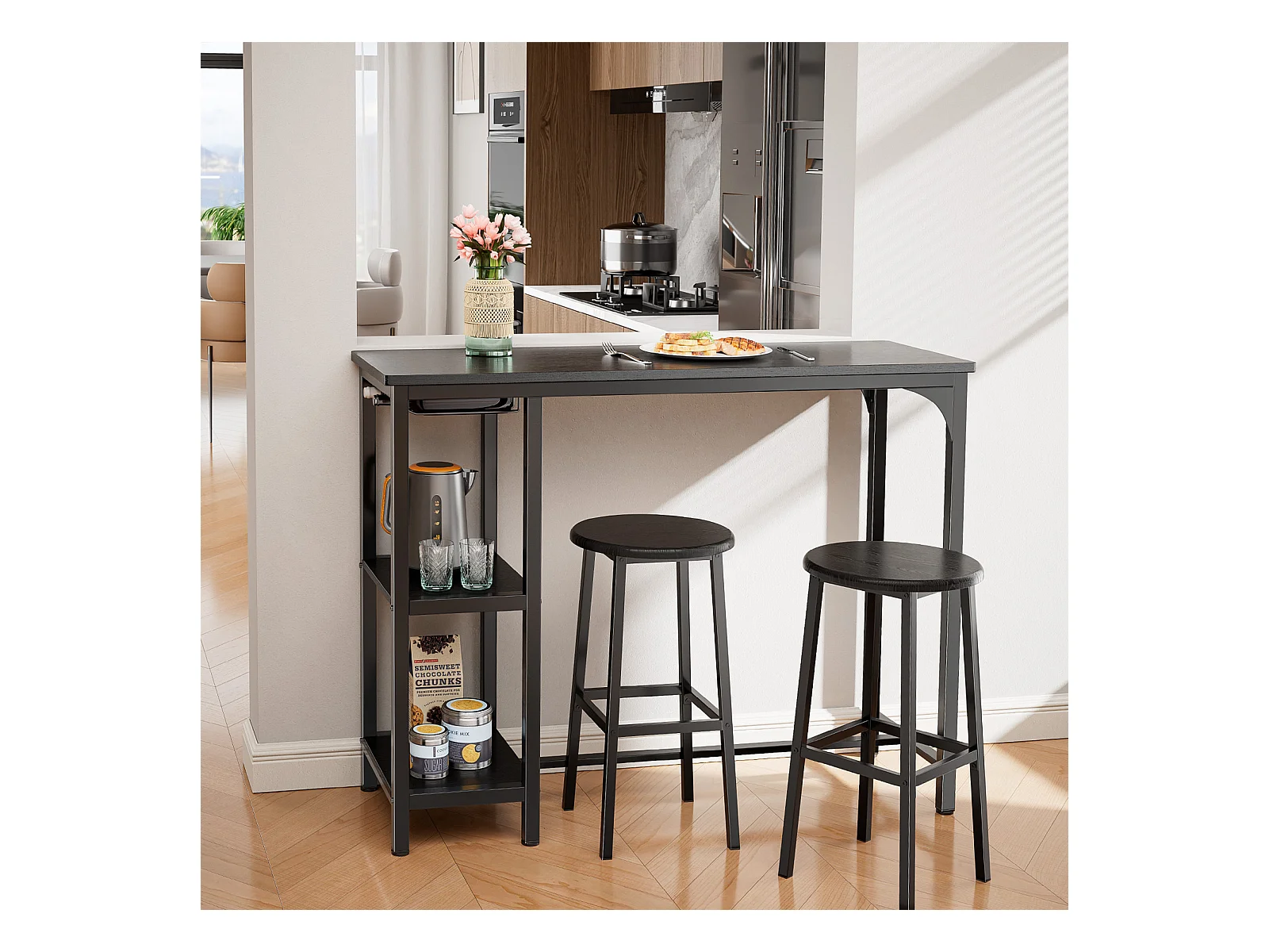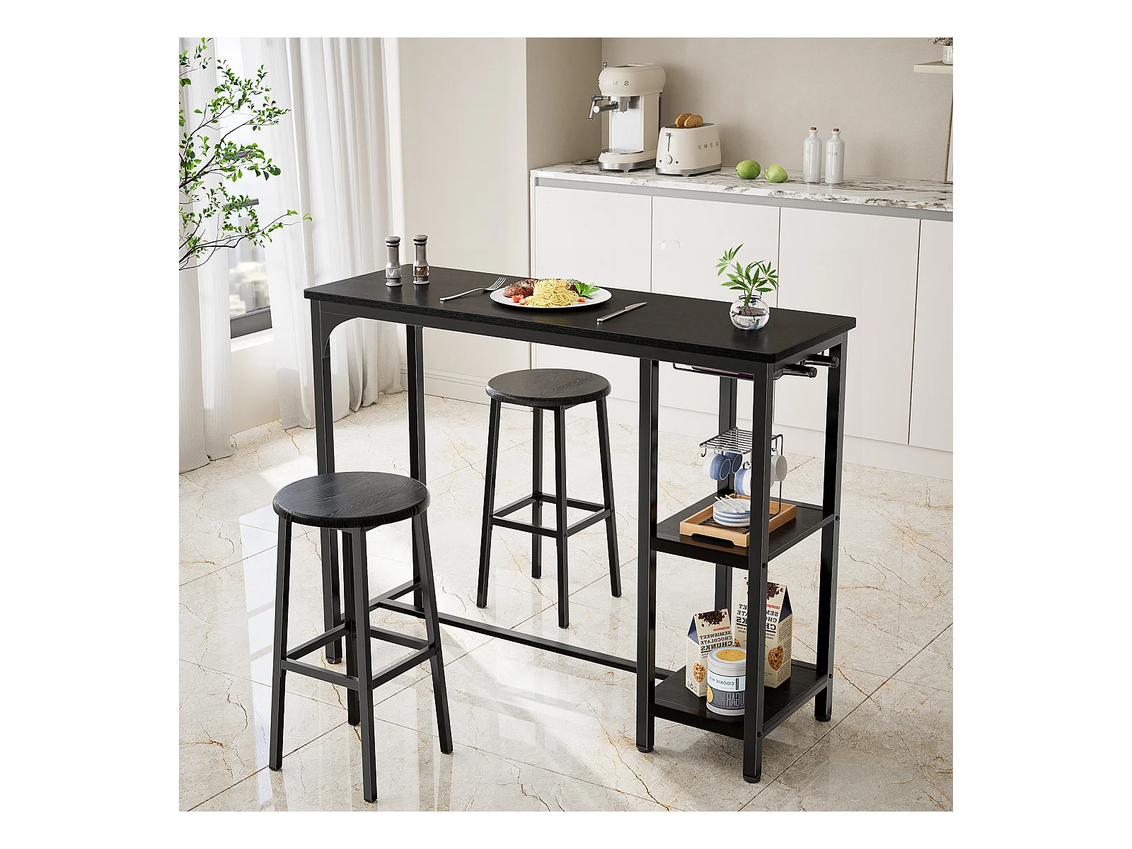Lot Table et Tabourets de Bar Bealife (1+2) avec Tablette - Cuisine, Bistrot - 91 x 50 x 91 cm - Noir