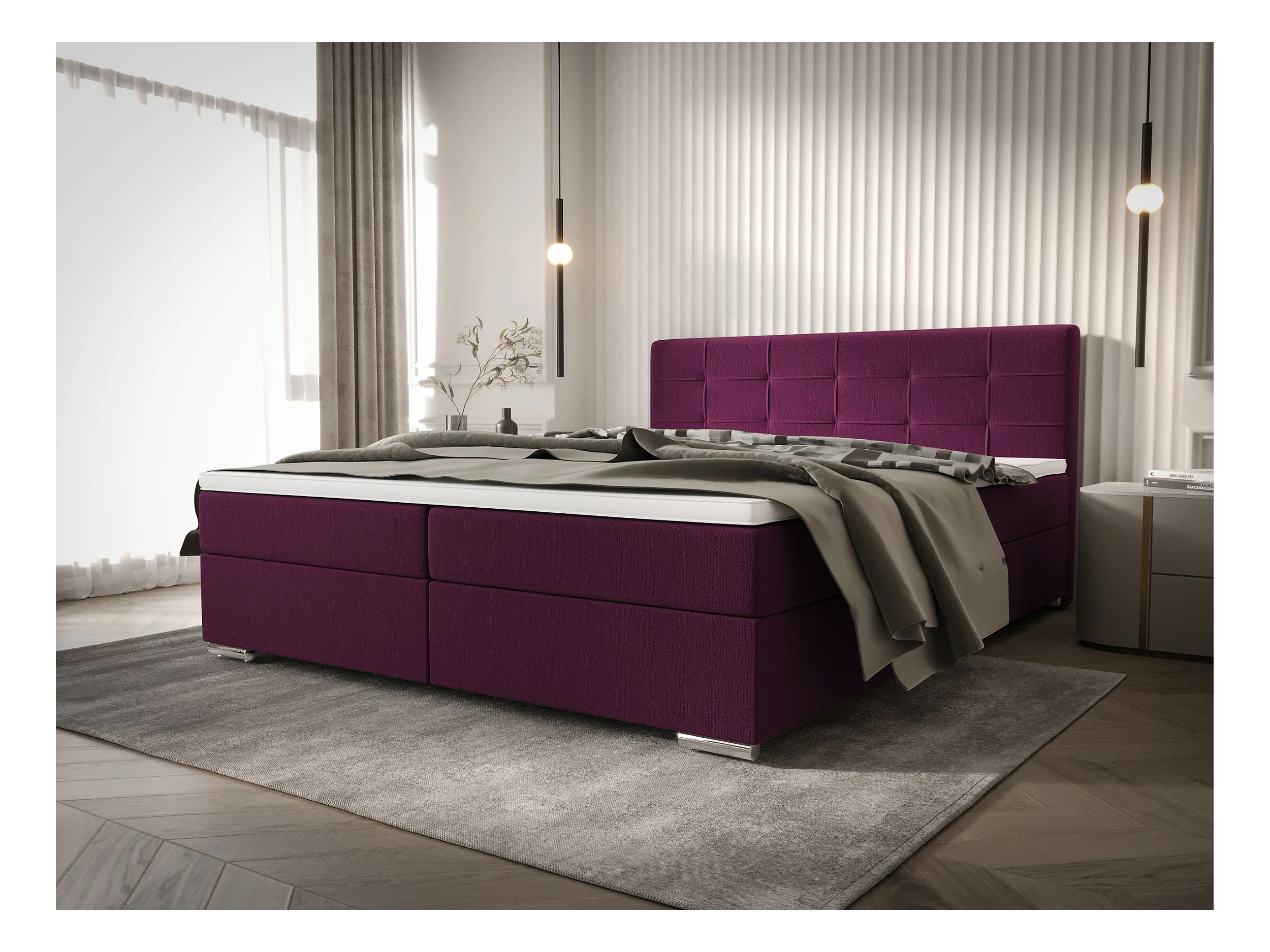 BEDANTE lit à sommier tapissier ZAKO 1 160x200 Cosmic 110 Violet Lit Litkasten