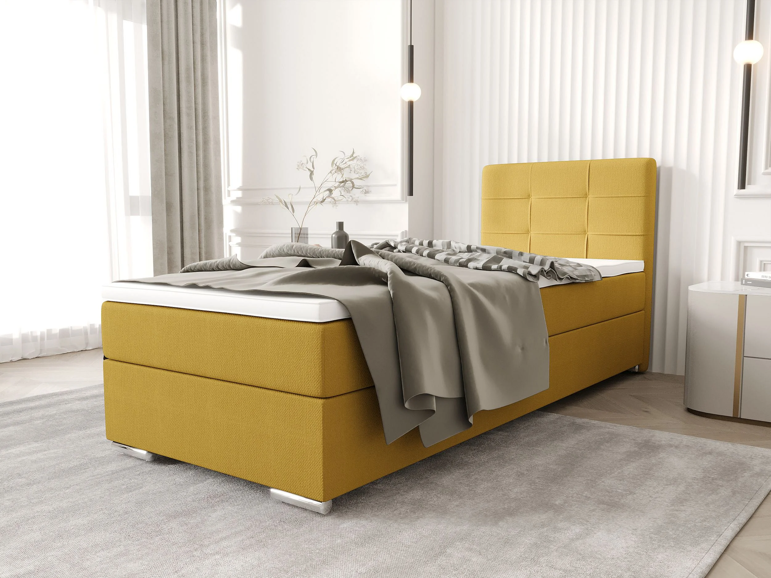 BEDANTE lit à sommier tapissier ZAKO 1 90x200 Cosmic 120 jaune ouverture à droite lit litkasten