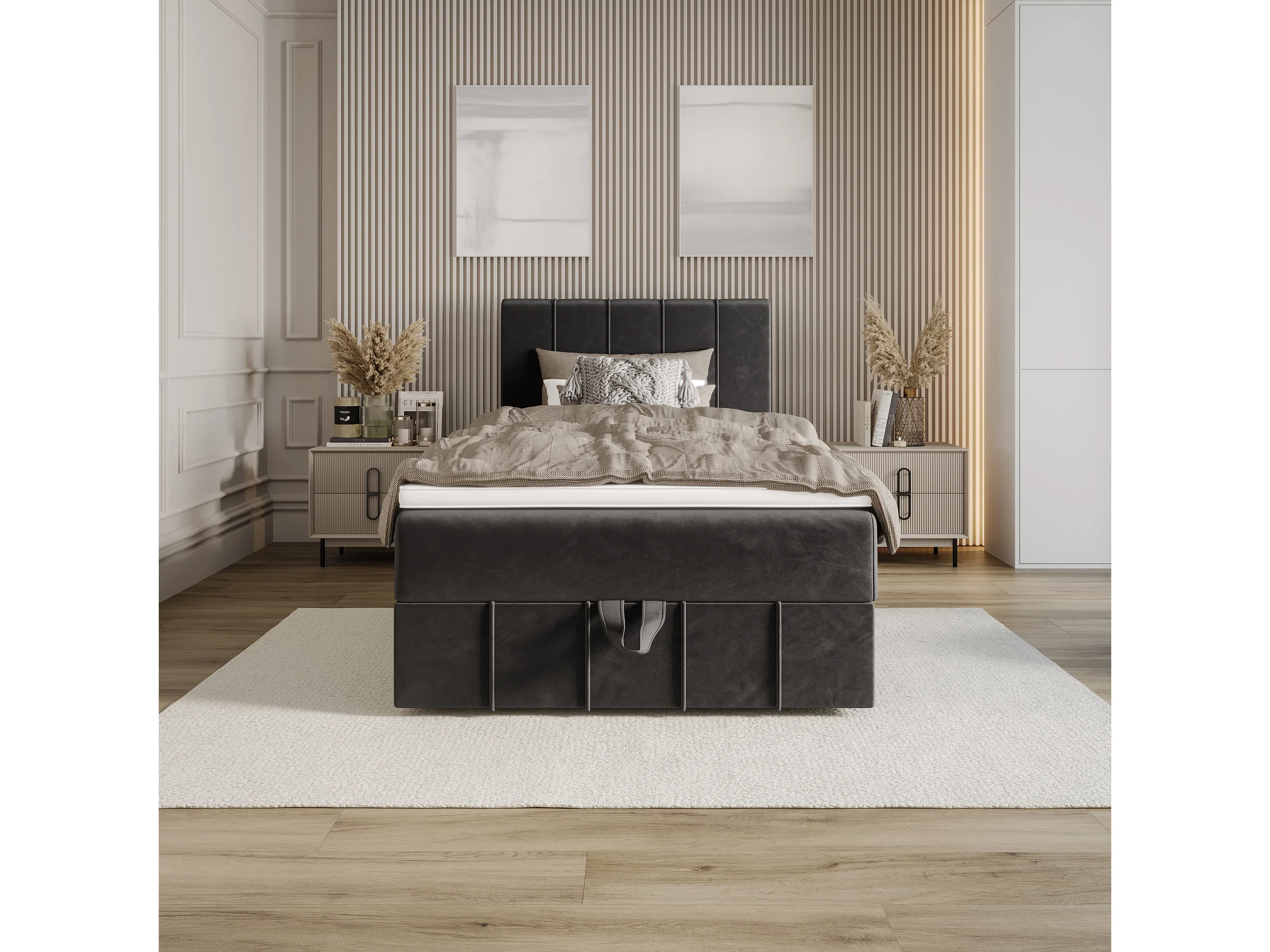 BEDANTE lit boxspring BAHAMA 80x200 Monolith 92 gris lit avec coffre lit simple lit d’hôtel surmatelas matelas chambre espace de rangement
