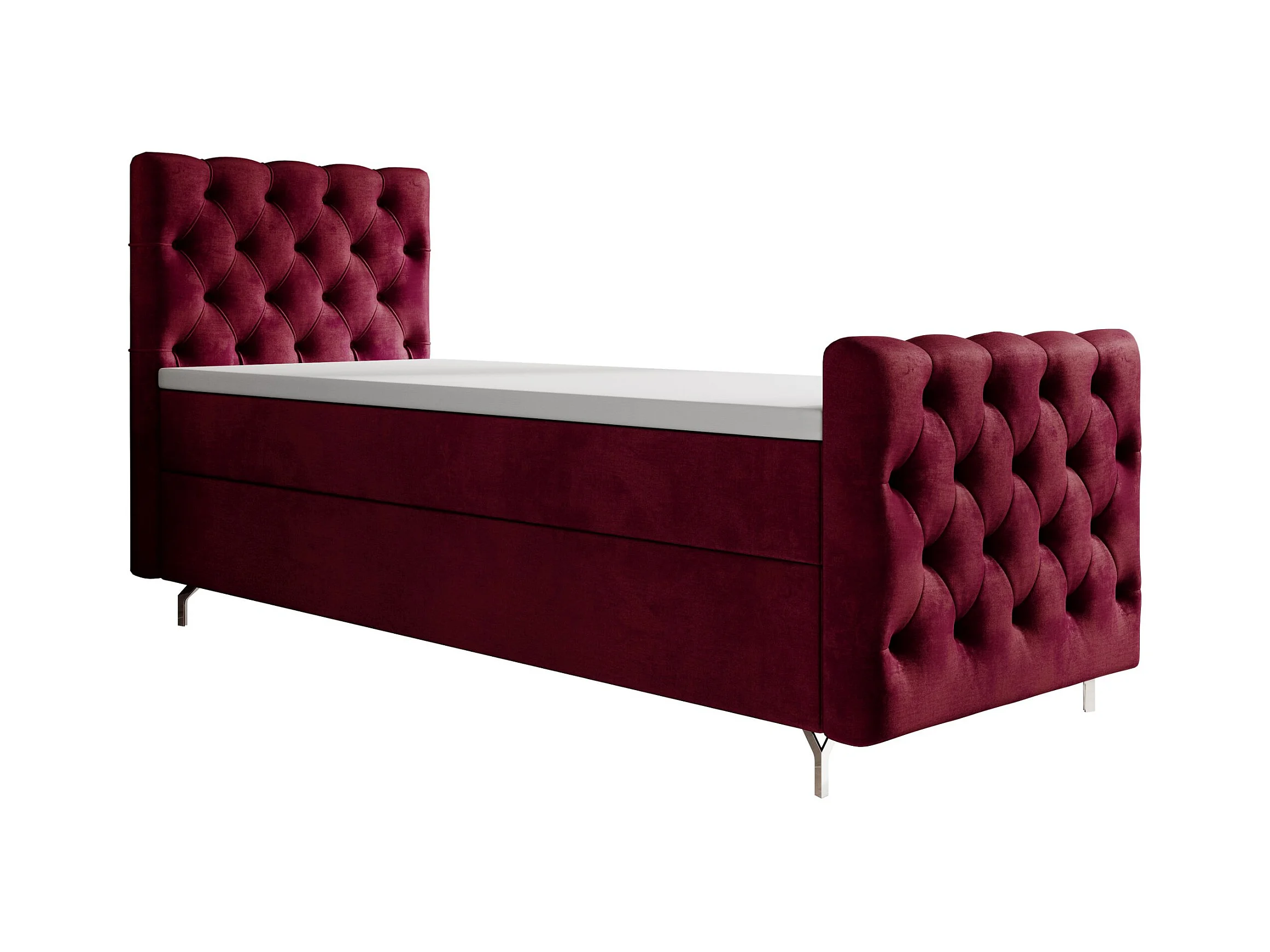 BEDANTE lit boxspring CHESTER PLUS 120x200 rouge avec matelas H3 et surmatelas lit avec coffre, lit simple, lit d'hôtel, chambre, avec rangement
