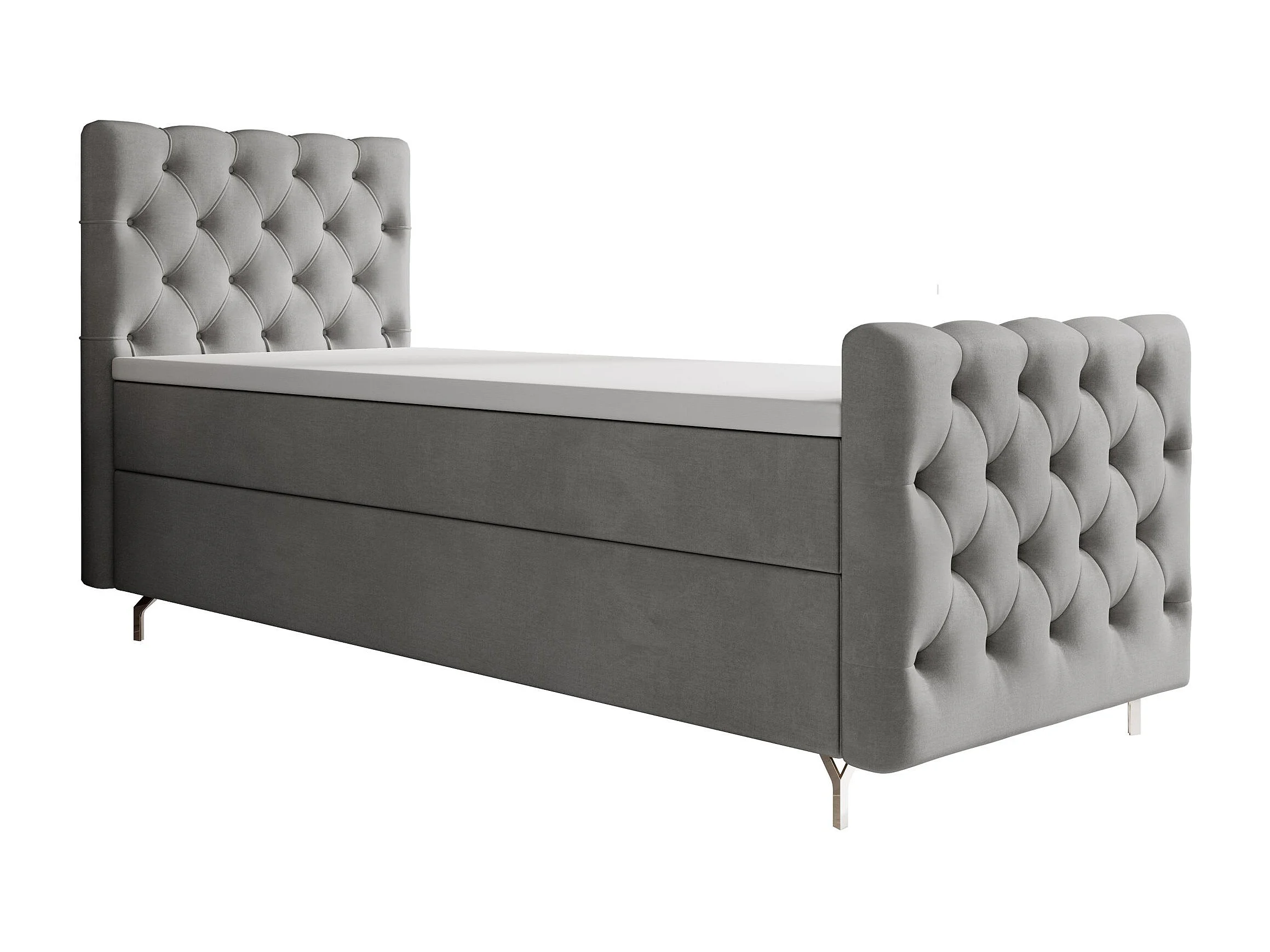 BEDANTE lit boxspring CHESTER PLUS 80x200 gris clair avec matelas H3 et surmatelas lit avec coffre, lit simple, lit d'hôtel, chambre, avec rangement