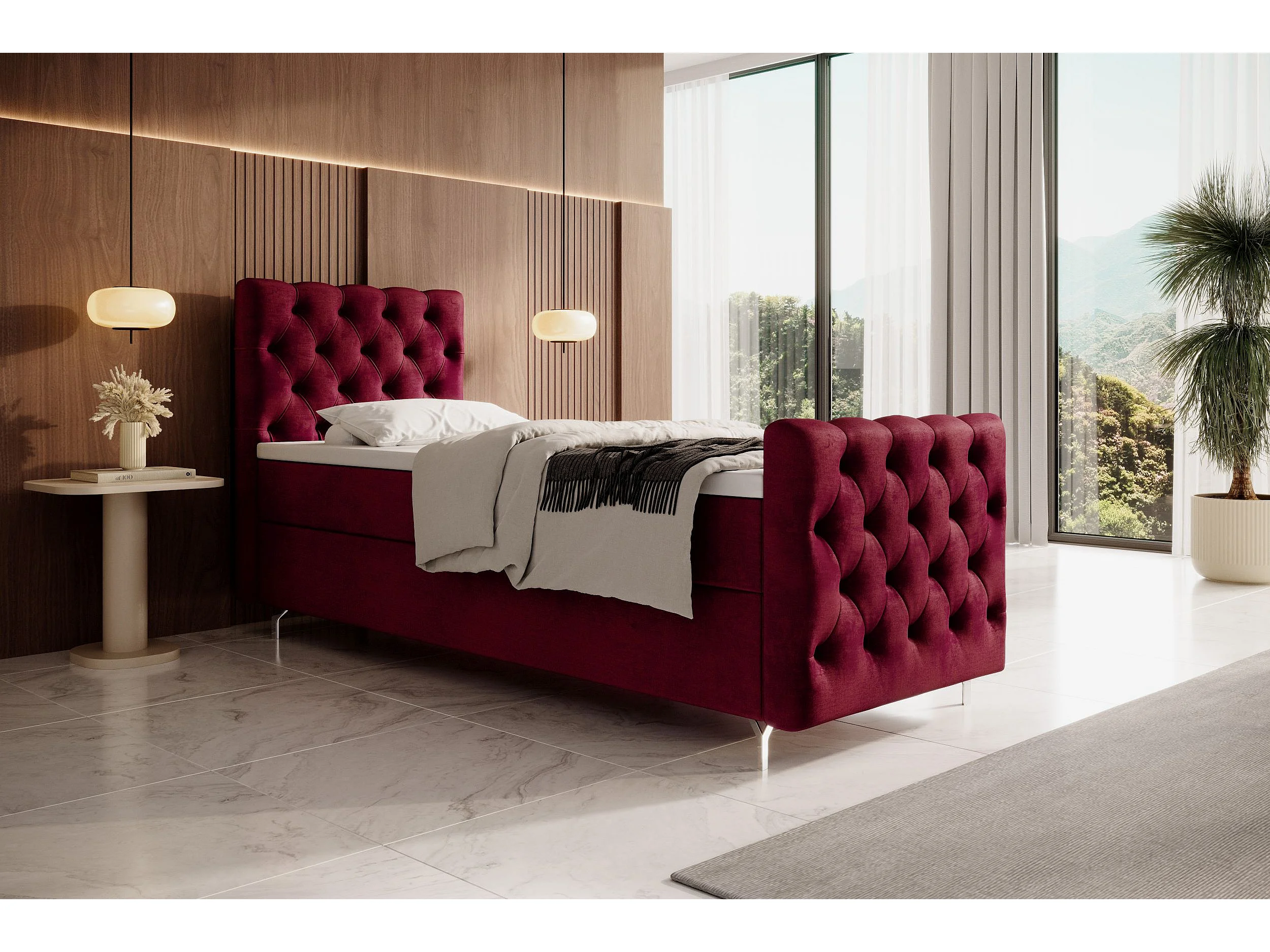 BEDANTE lit boxspring CHESTER PLUS 80x200 rouge avec matelas H3 et surmatelas lit avec coffre, lit simple, lit d'hôtel, chambre, avec rangement