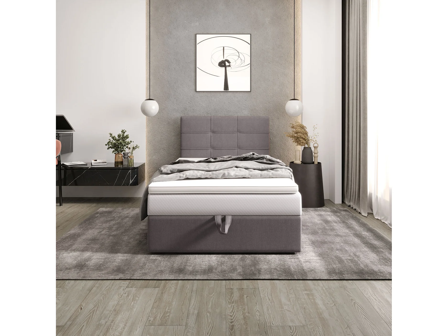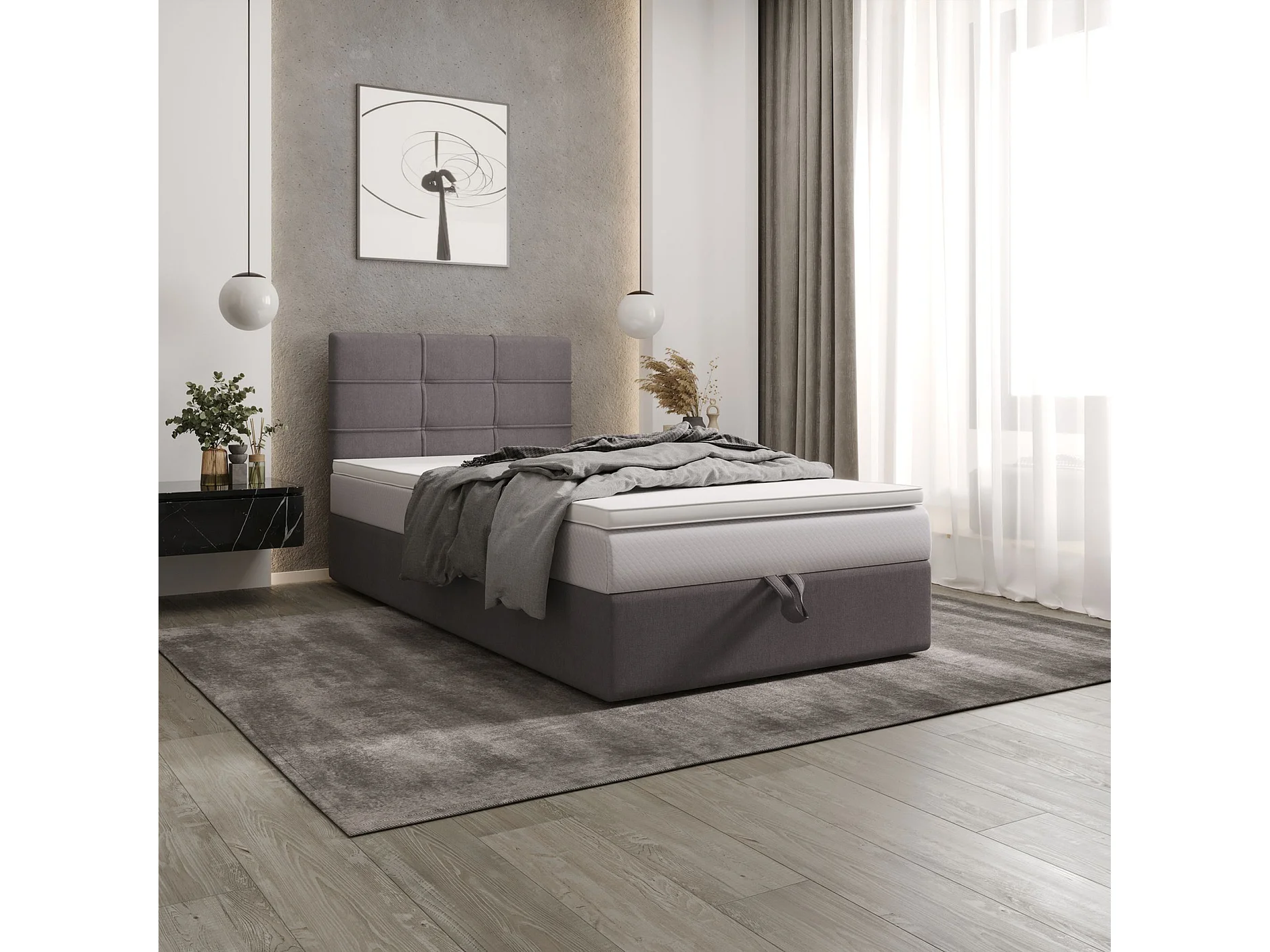 BEDANTE lit boxspring DUO 2 80x200 Cosmic 160 gris clair lit avec coffre lit double lit d’hôtel surmatelas matelas chambre espace de rangement