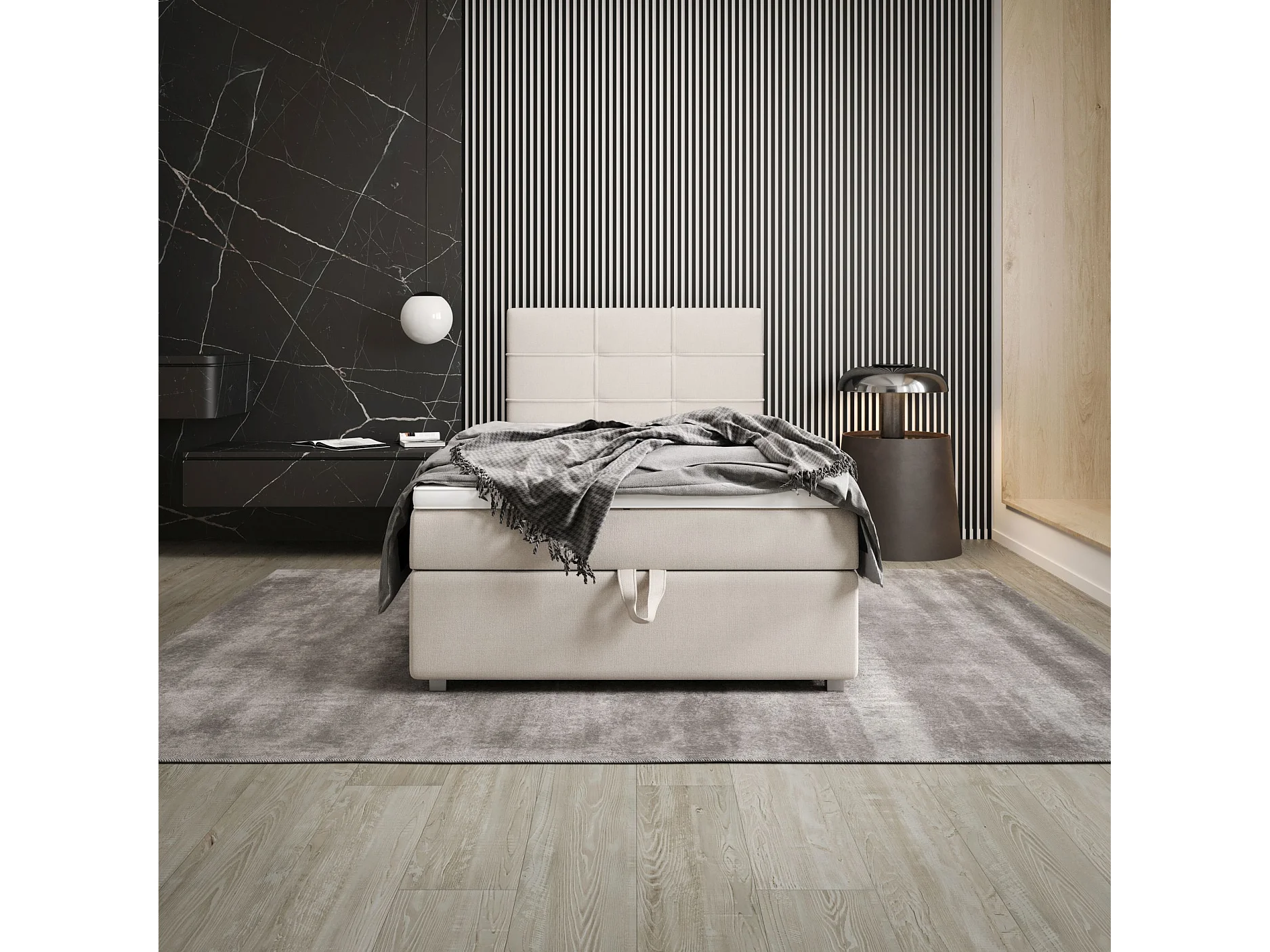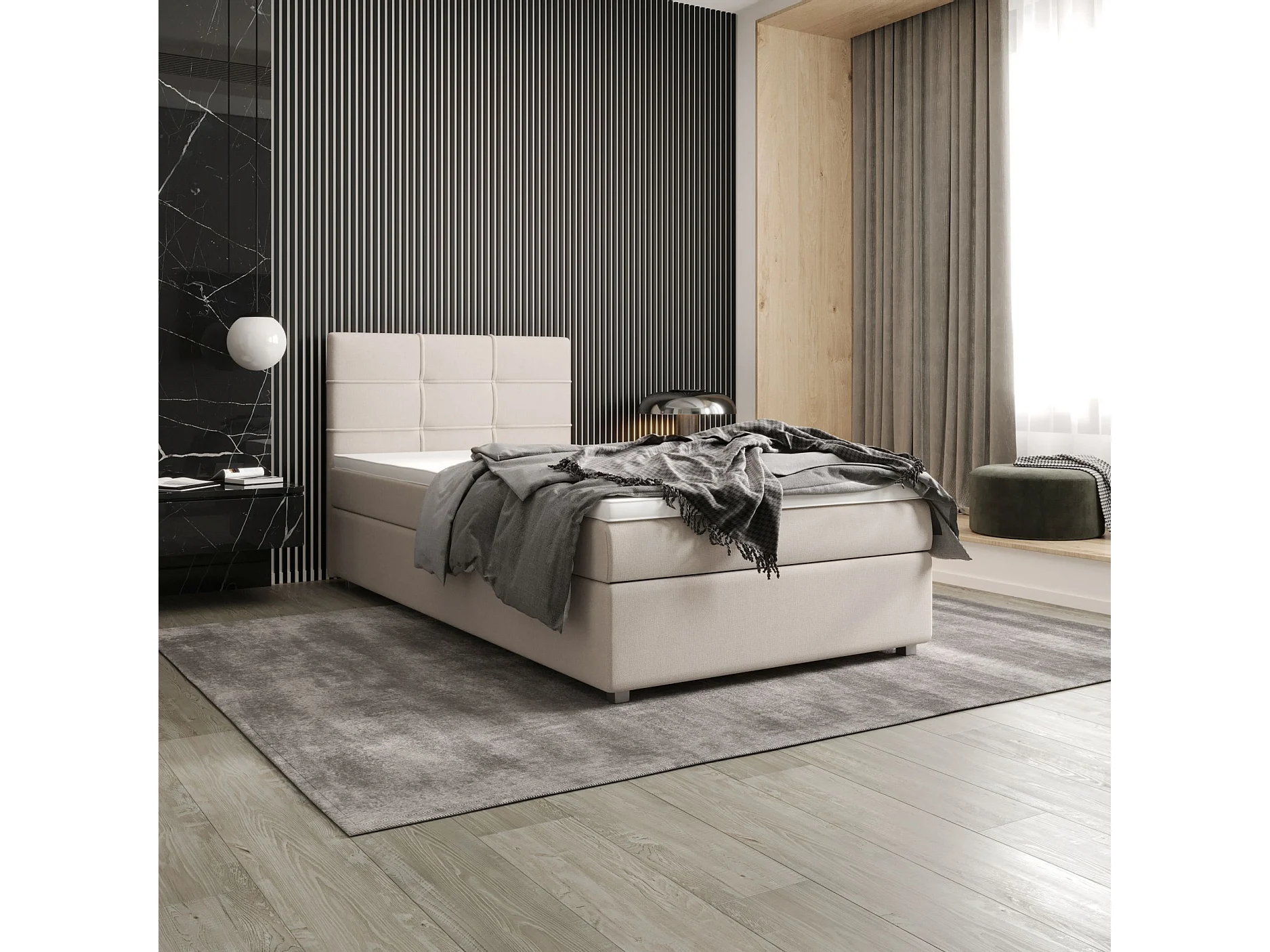 BEDANTE Lit boxspring FADO 1 80x200 Cosmic 10 Beige Lit Coffre Lit simple Lit d’hôtel