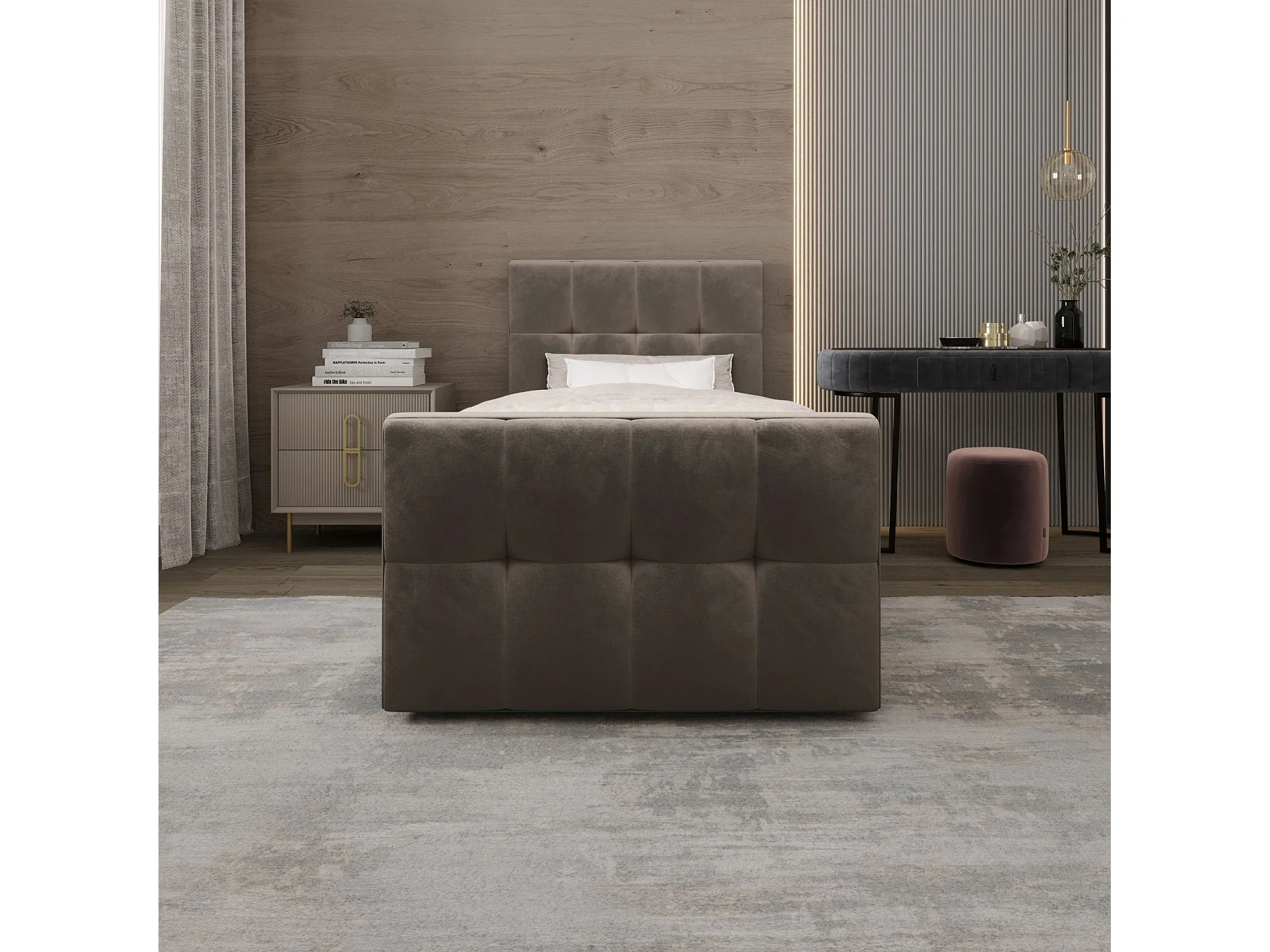 BEDANTE Lit Boxspring MANHATTAN 80x200 Monolith 15 Brun Lit avec coffre Lit simple Lit d’hôtel Surmatelas Matelas Chambre Espace de rangement