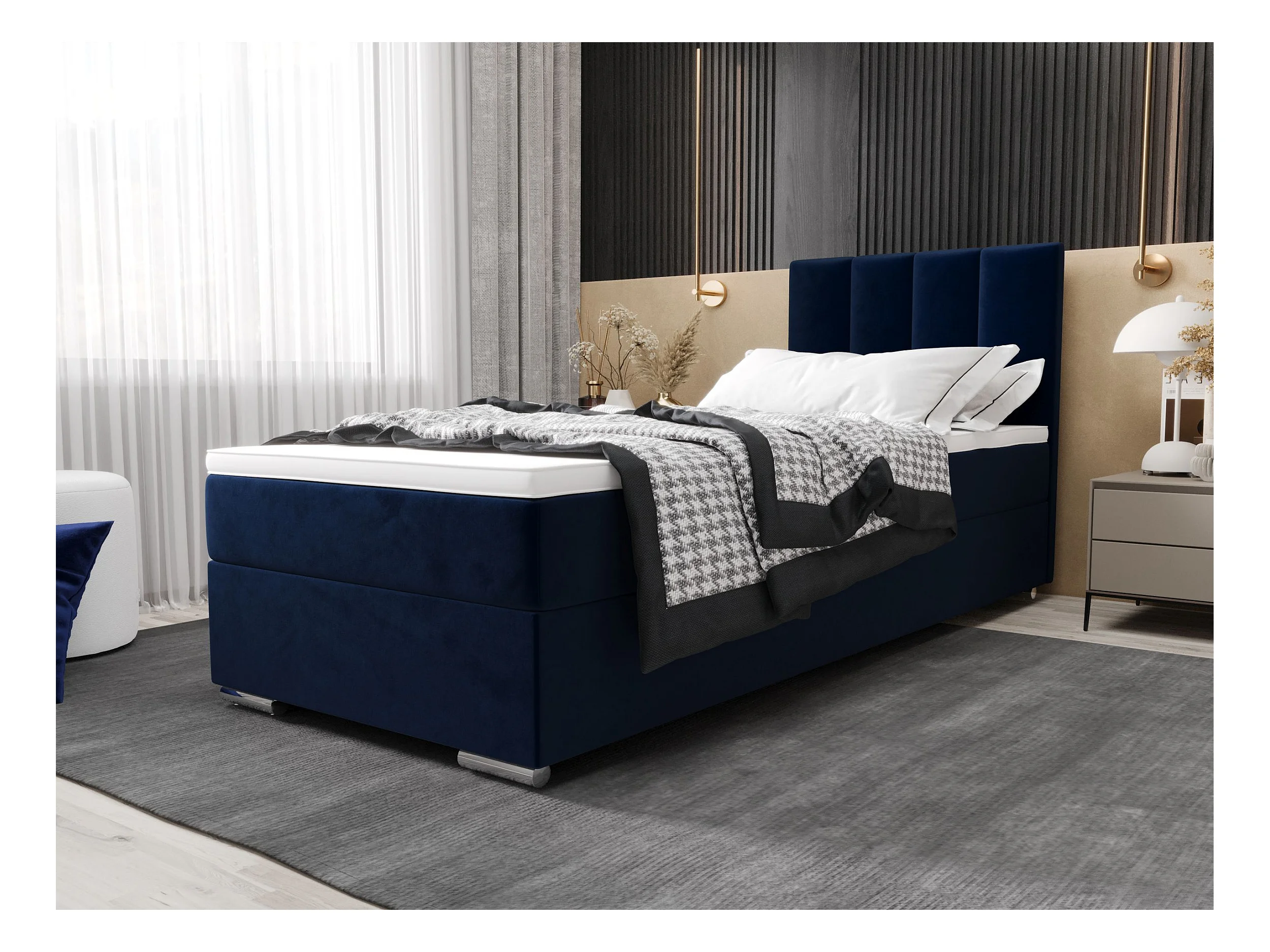 BEDANTE Lit boxspring ZAKO 2 80x200 Itaka 11 Bleu foncé Lit Ouverture à gauche Lit Litkasten