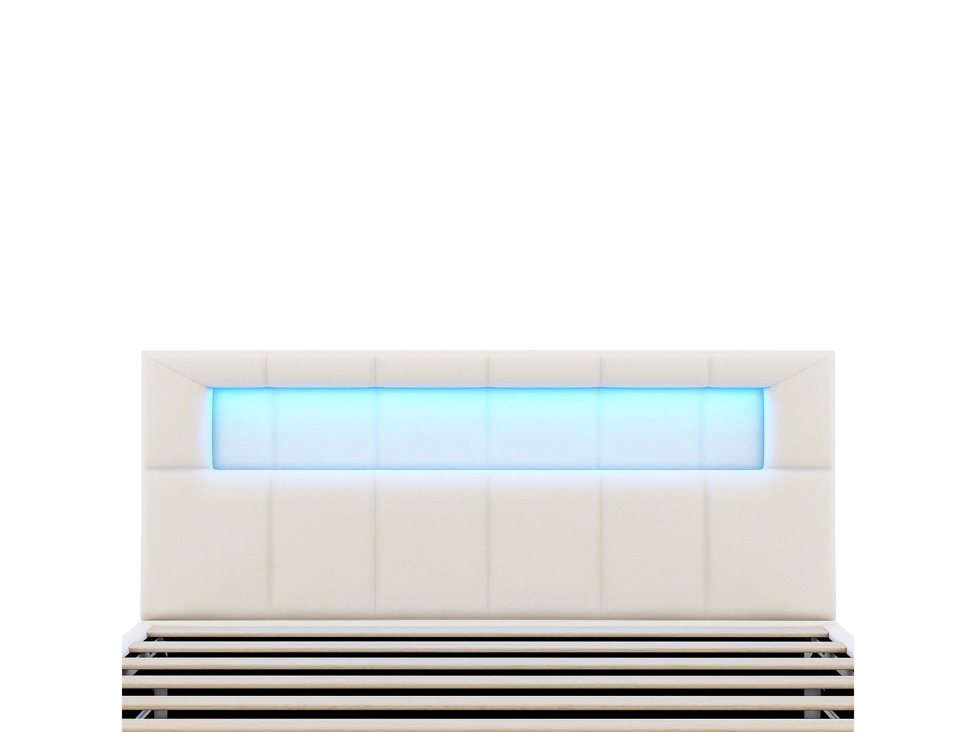 Lit rembourré 90*200 cm, Lumière d'ambiance au chevet, S'ouvre d'un côté, Tête de lit réglable, Velours, Beige