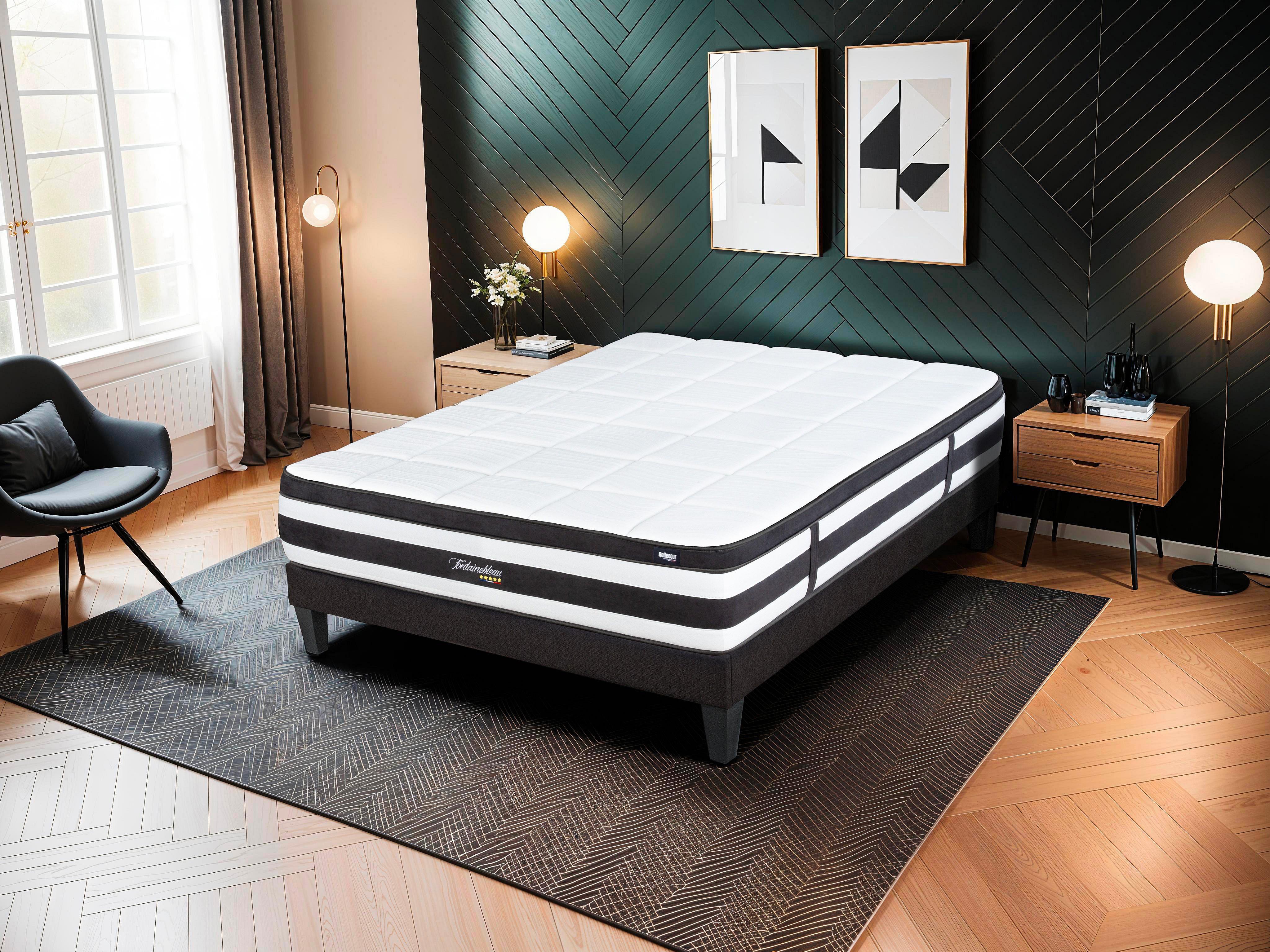 BELLECOUR LITERIE | Ensemble FONTAINEBLEAU 180x200 cm | Matelas Ressorts ensachés + Sommier Bois