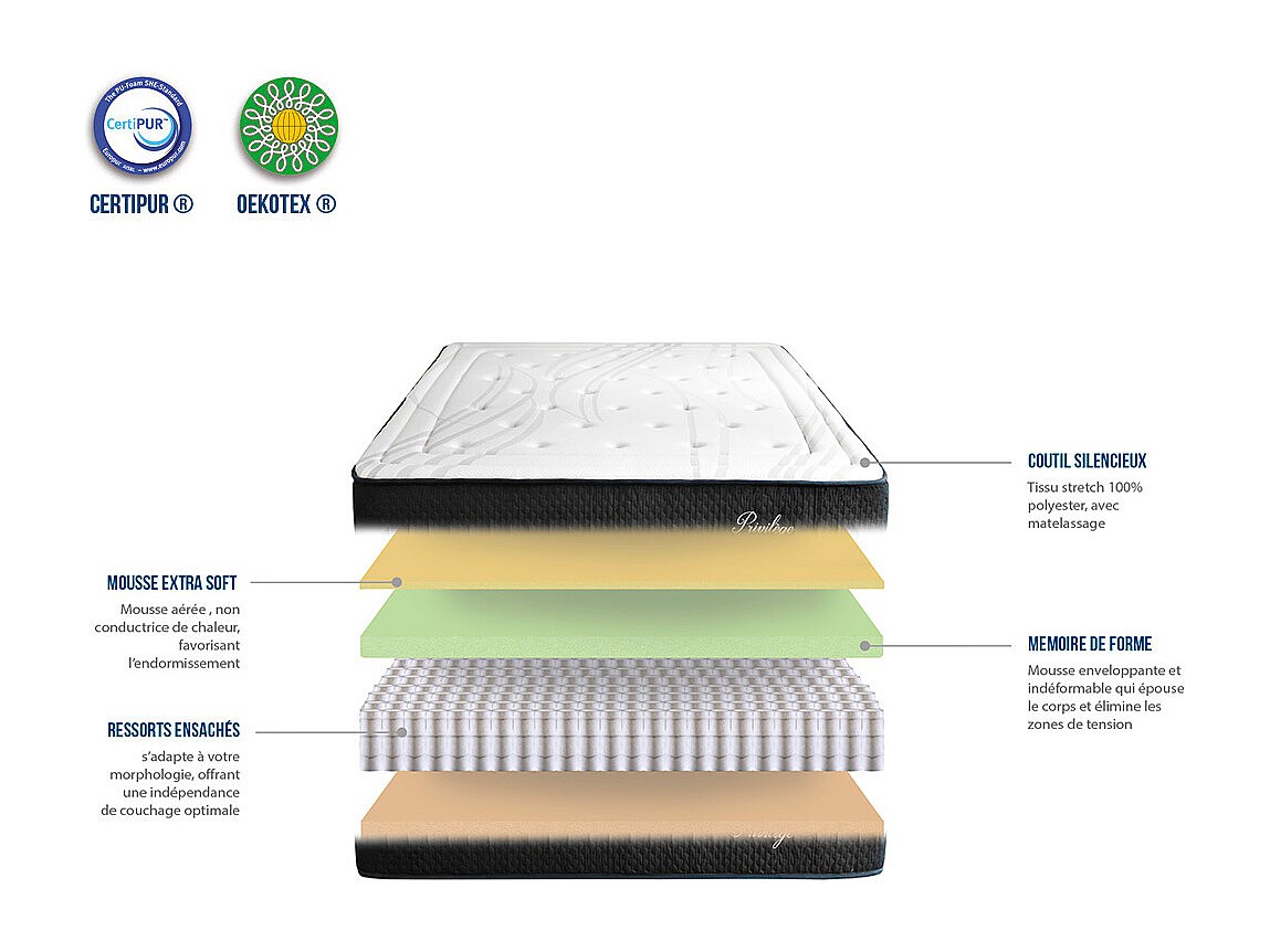 BELLECOUR LITERIE | Ensemble PRIVILEGE 200x200 cm | Matelas Ressorts ensachés + Sommier Bois