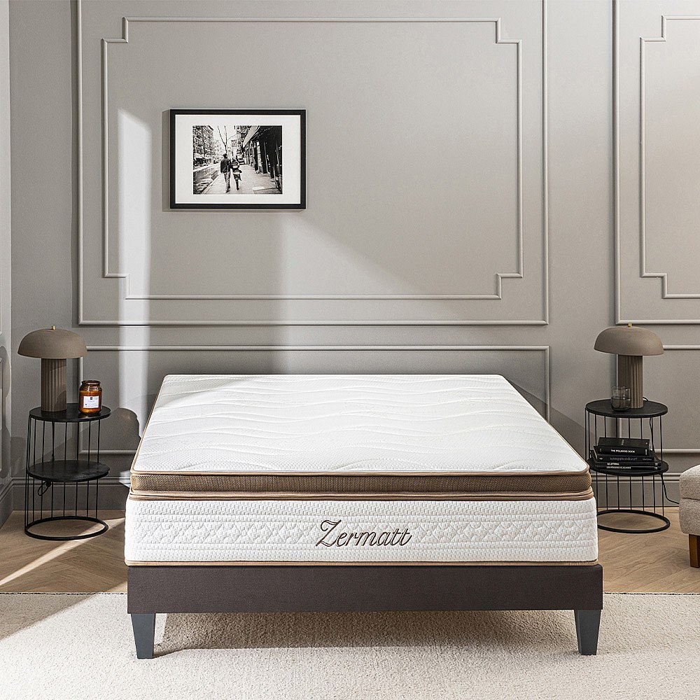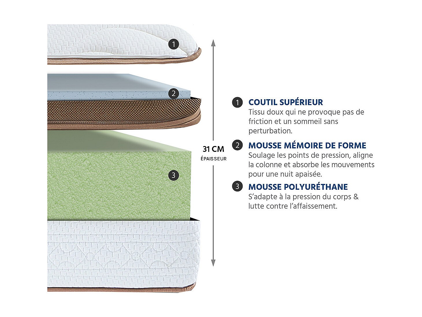 BELLECOUR LITERIE | Ensemble ZERMATT 160x200 cm | Matelas Mémoire de forme + Sommier Bois