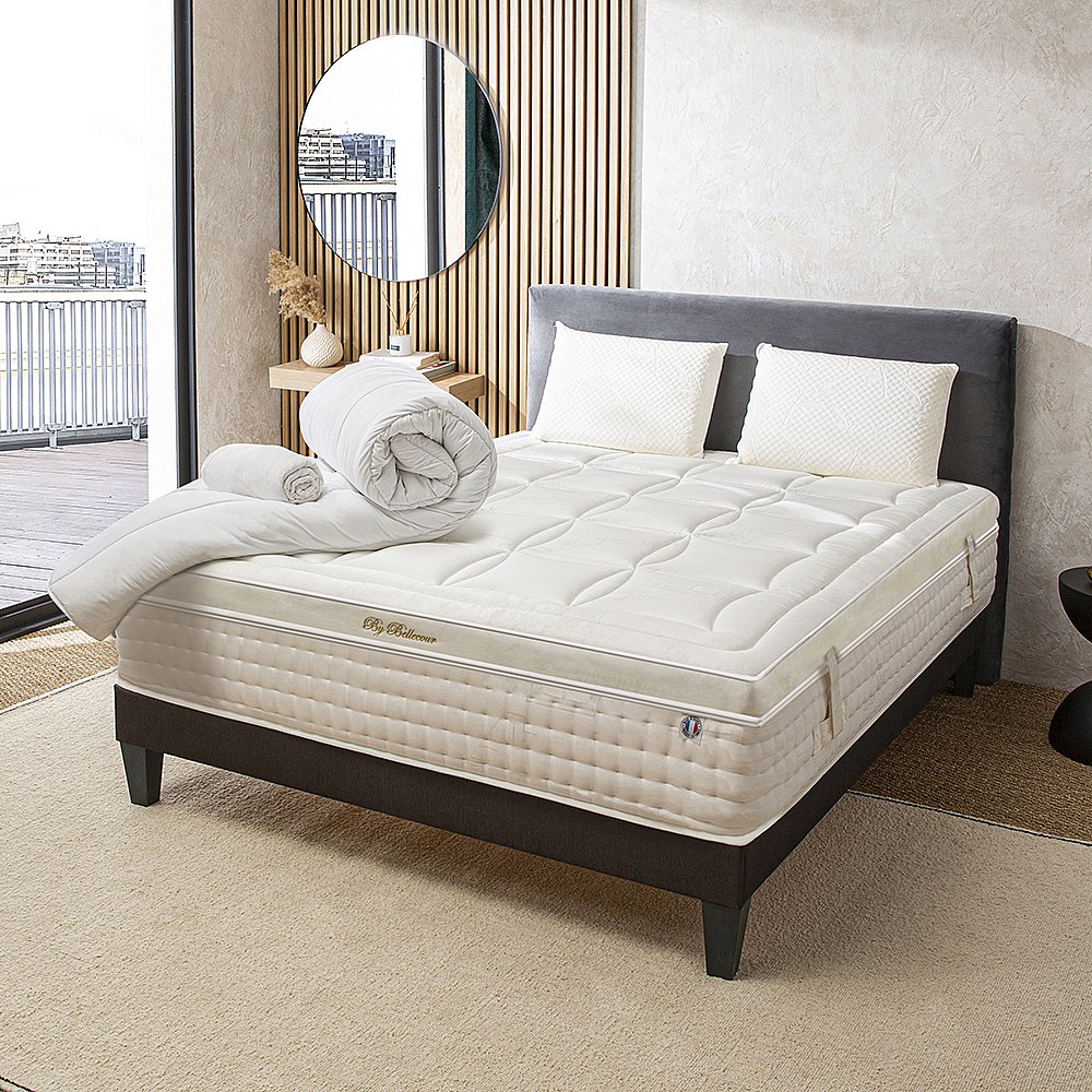 BELLECOUR LITERIE | Pack Prêt à dormir EMPEREUR 90x190 cm | Matelas Mémoire de forme + Sommier + Accessoires