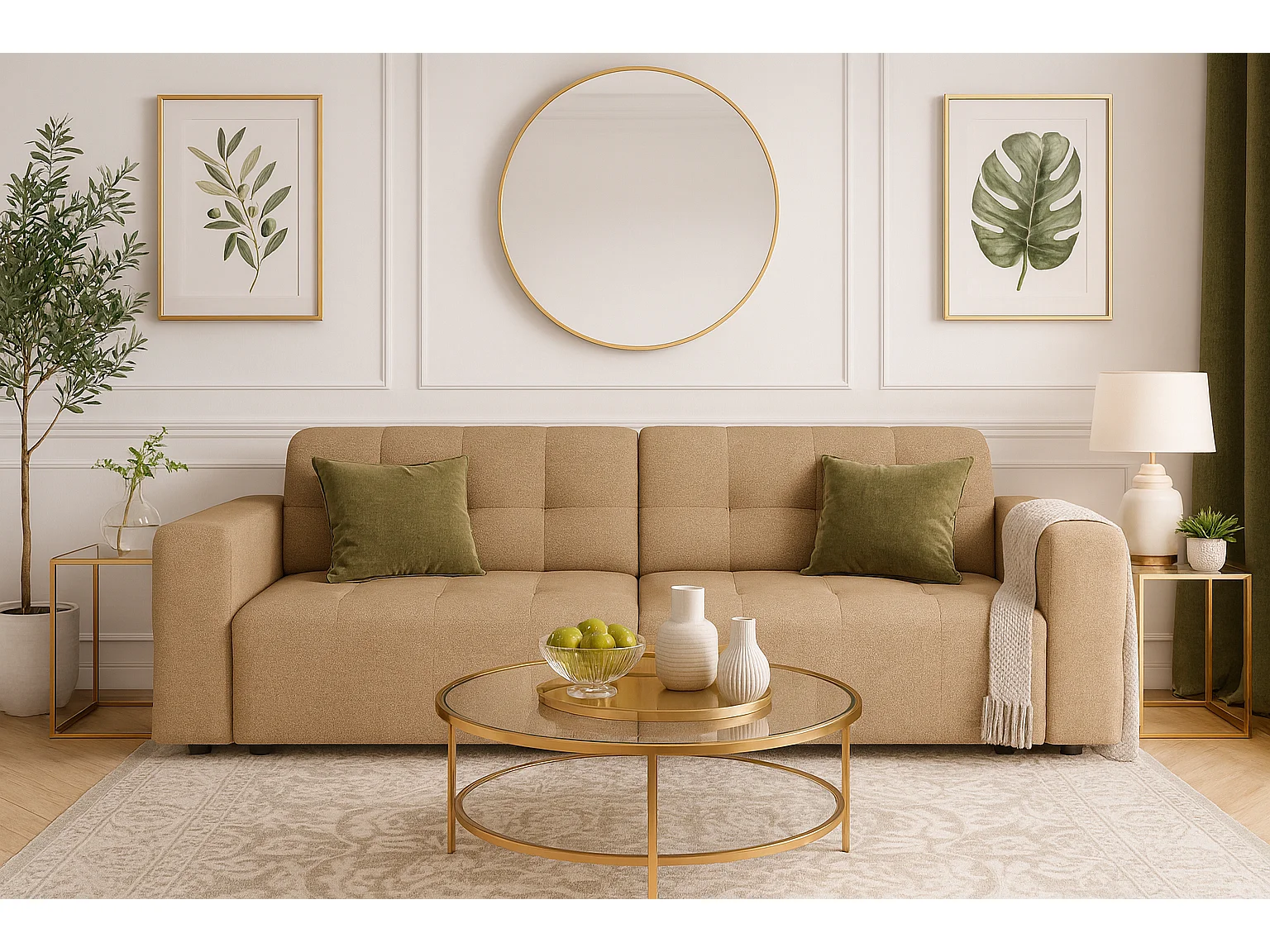 Bergamo Canapé 3 places – tissu Raven 34 gris marron clair, 244×102×70 cm