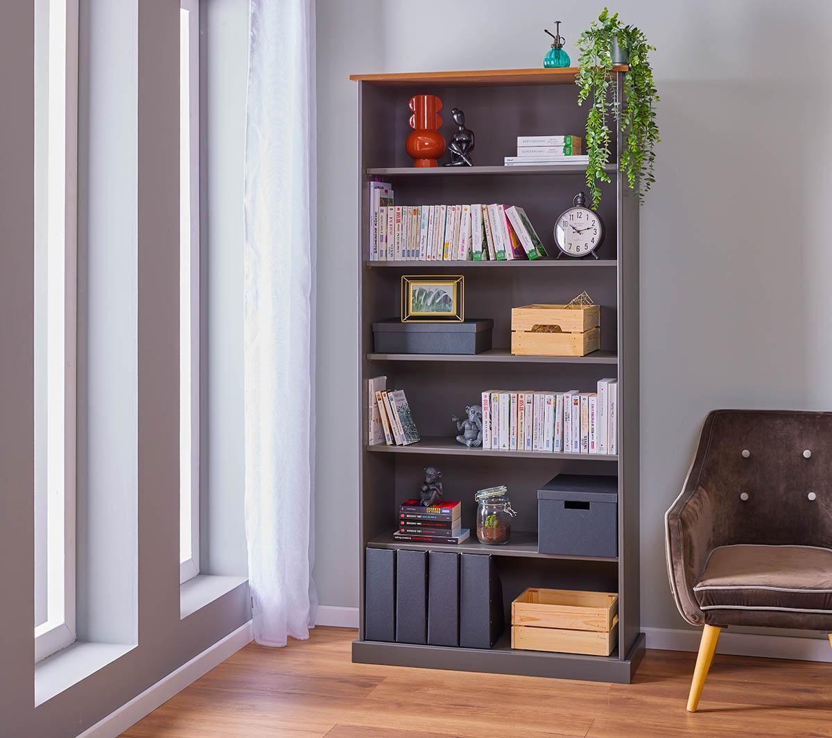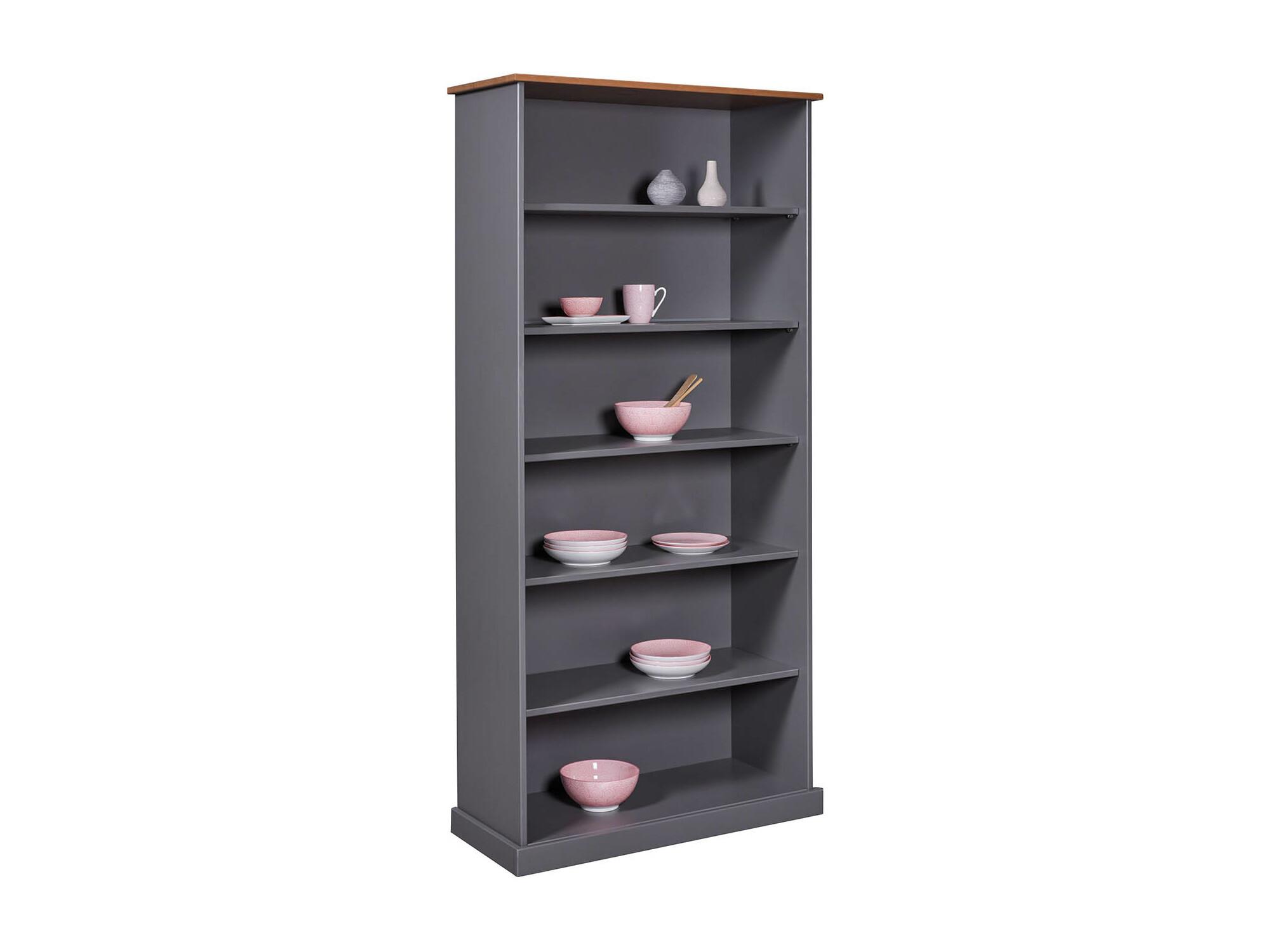 Bibliothèque avec 6 étagères en pin massif coloris gris/marron - Longueur 90 x Profondeur 38 x Hauteur 190 cm